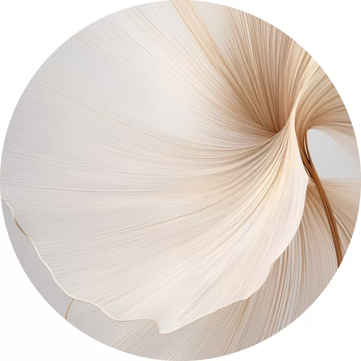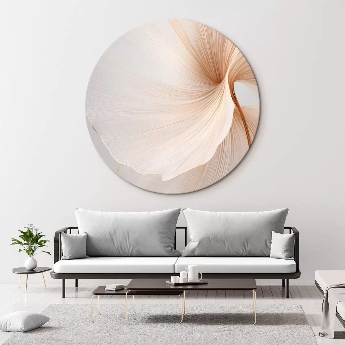 Tableaux ronds Fleurs abstraites aux pétales fins et délicats dans des tons de blanc et de beige r45922