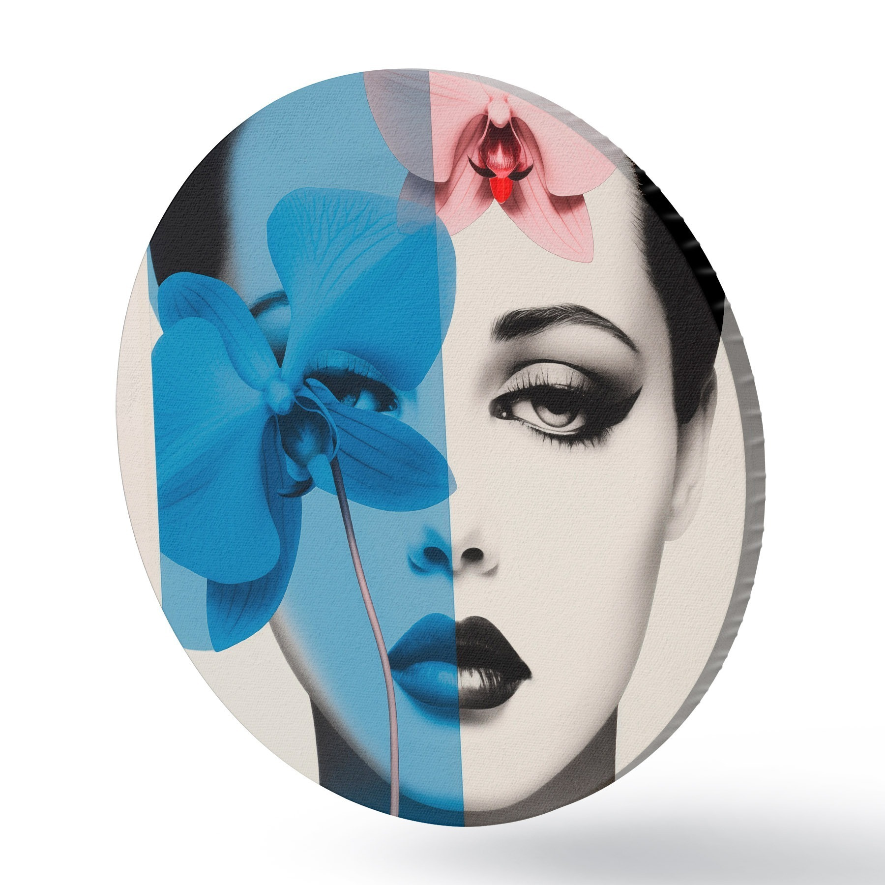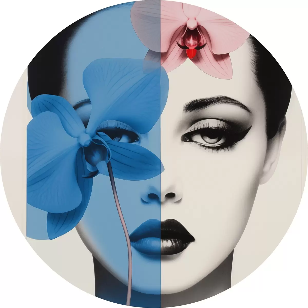 Tableaux ronds Portrait abstrait d'une femme avec des orchidées r45924