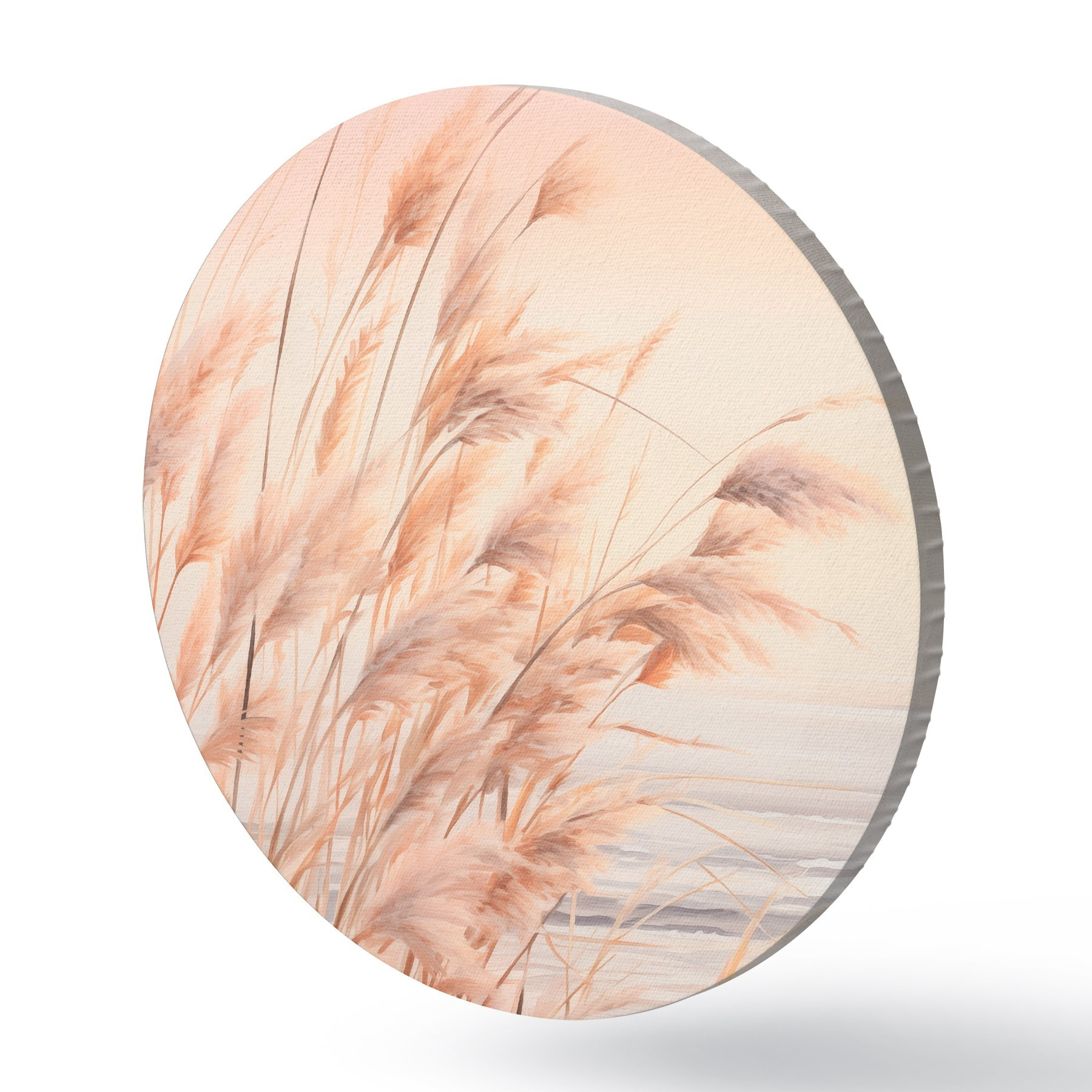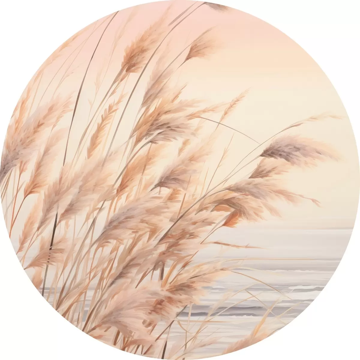 Tableaux ronds Herbe de la pampa avec une palette de couleurs orange pastel, un ciel rose pâle, un paysage paisible r45934