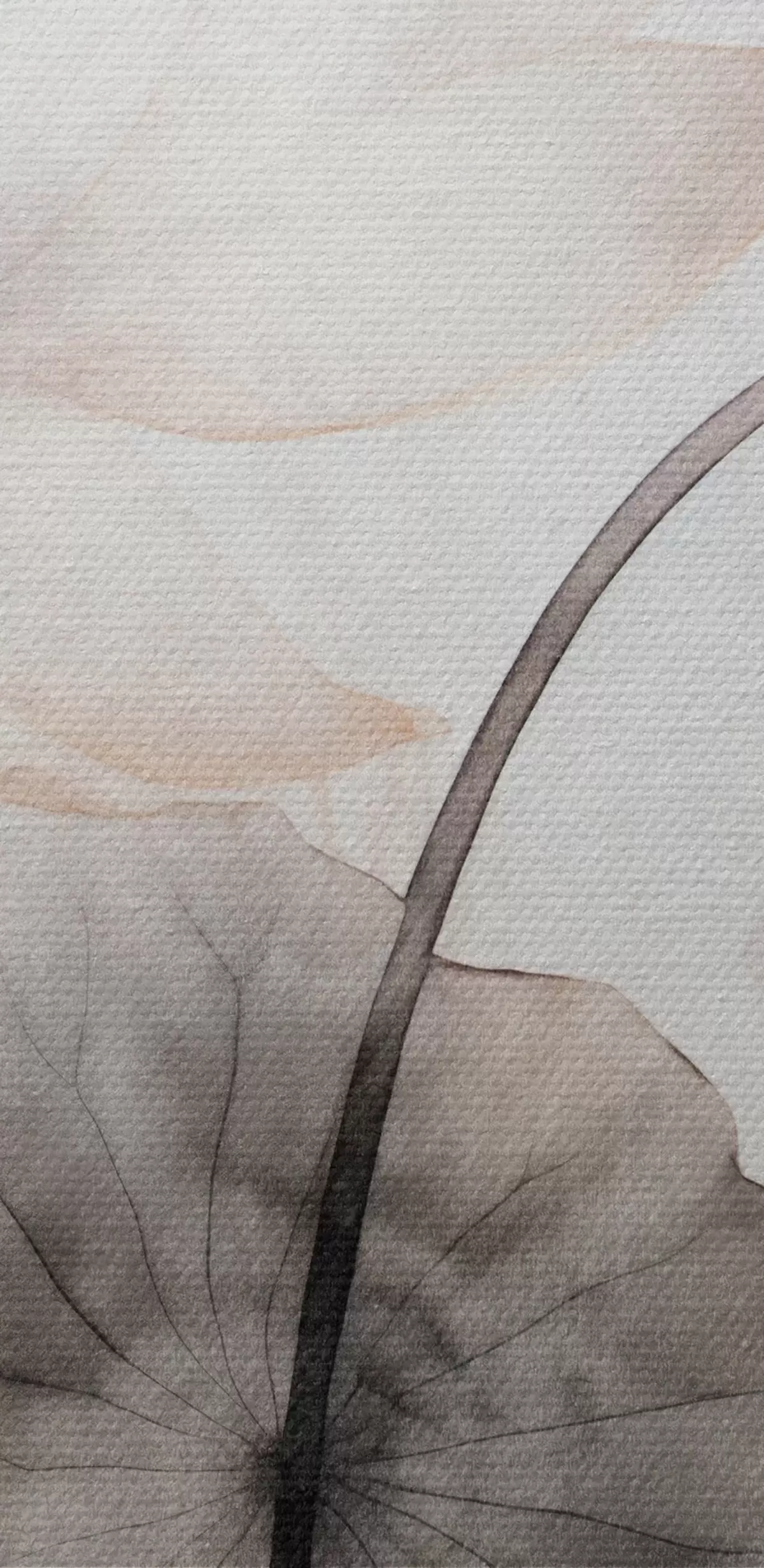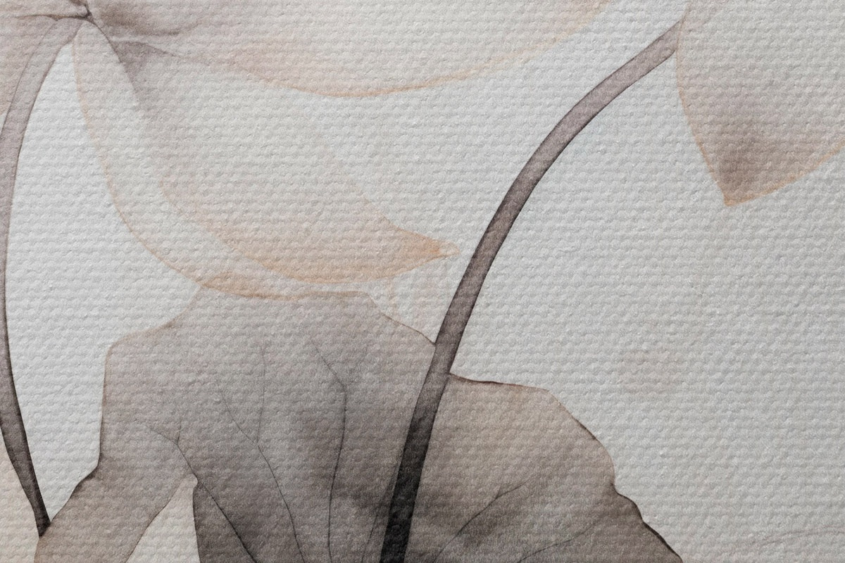 Image Fleurs de lotus blanches texturées avec des feuilles foncées, fond clair, design minimaliste Nr r45937