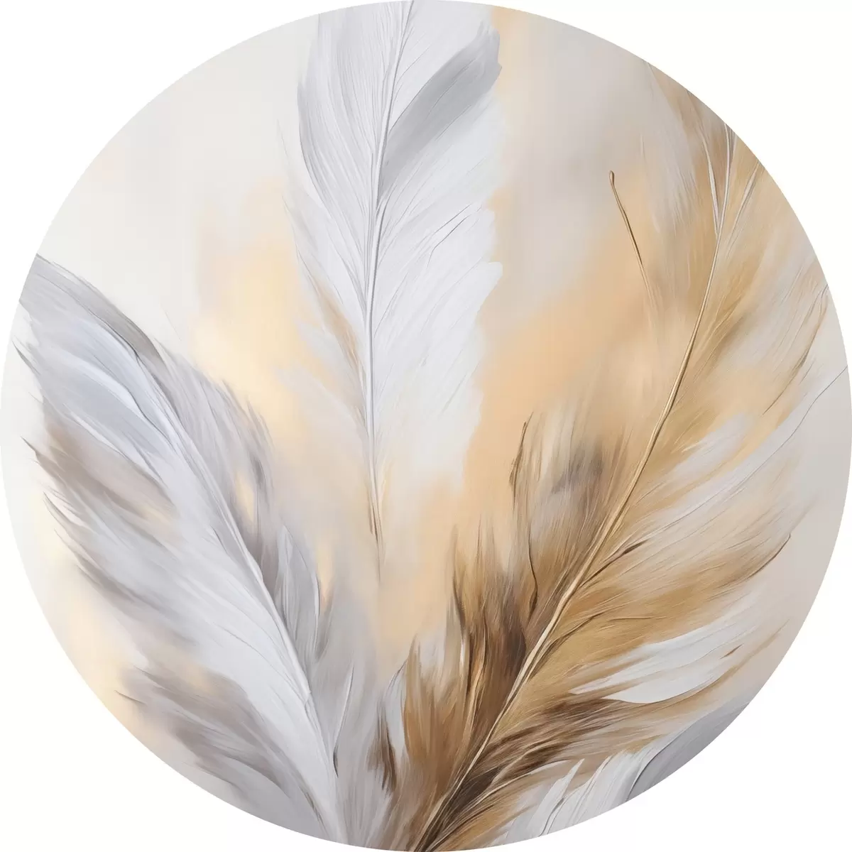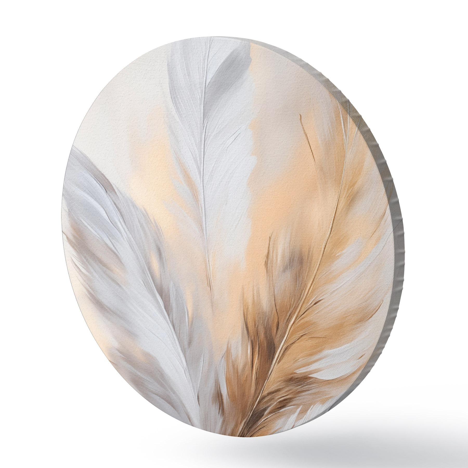 Tableaux ronds Plumes rehaussées de touches orange, composition minimaliste texturée, art moderne r45945