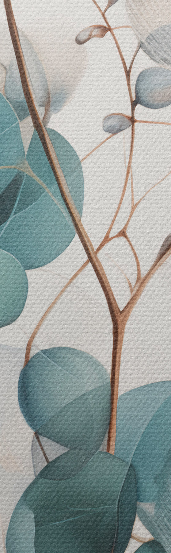 Image Fleurs abstraites d'eucalyptus aux pétales blancs, feuilles vert pâle sur les branches Nr r45946
