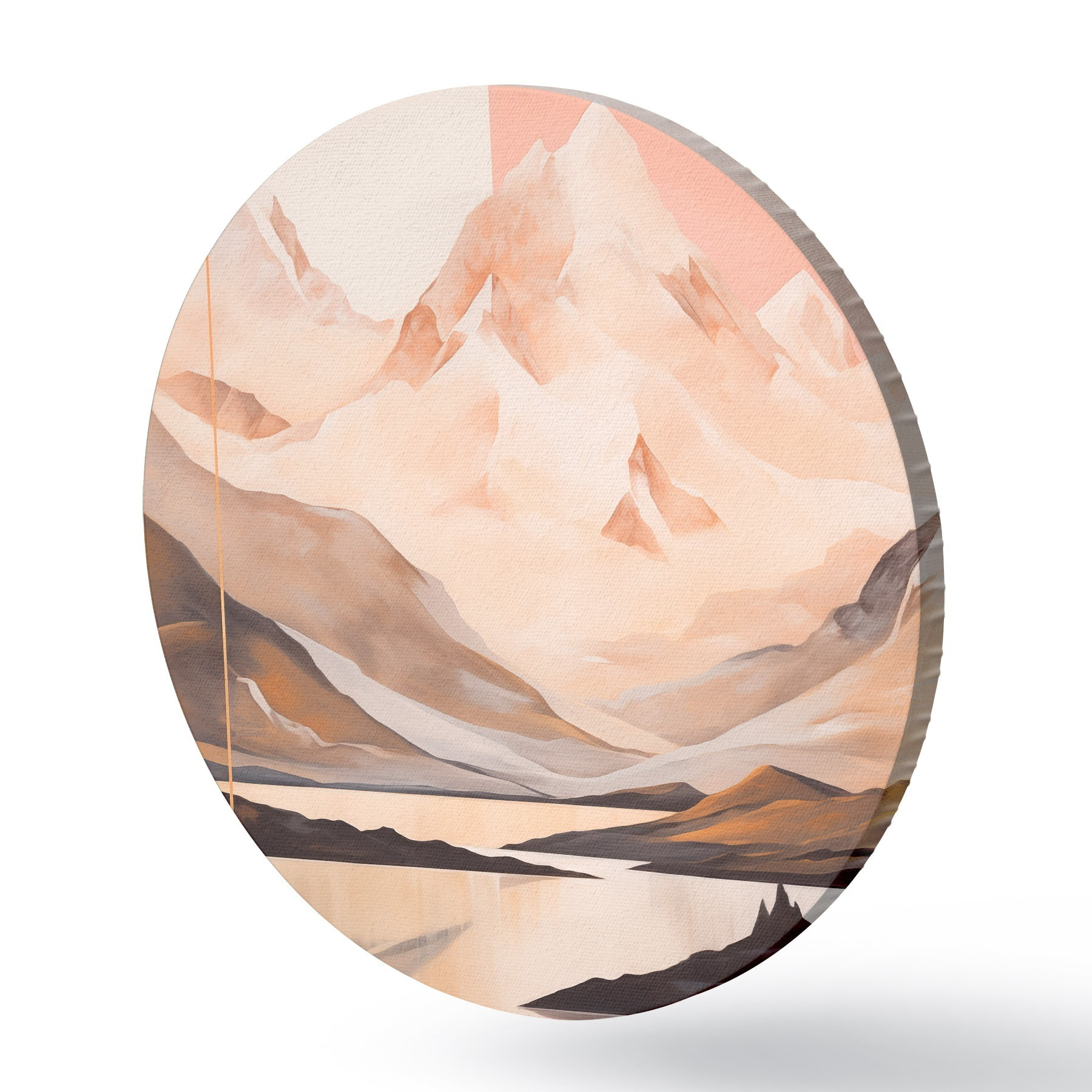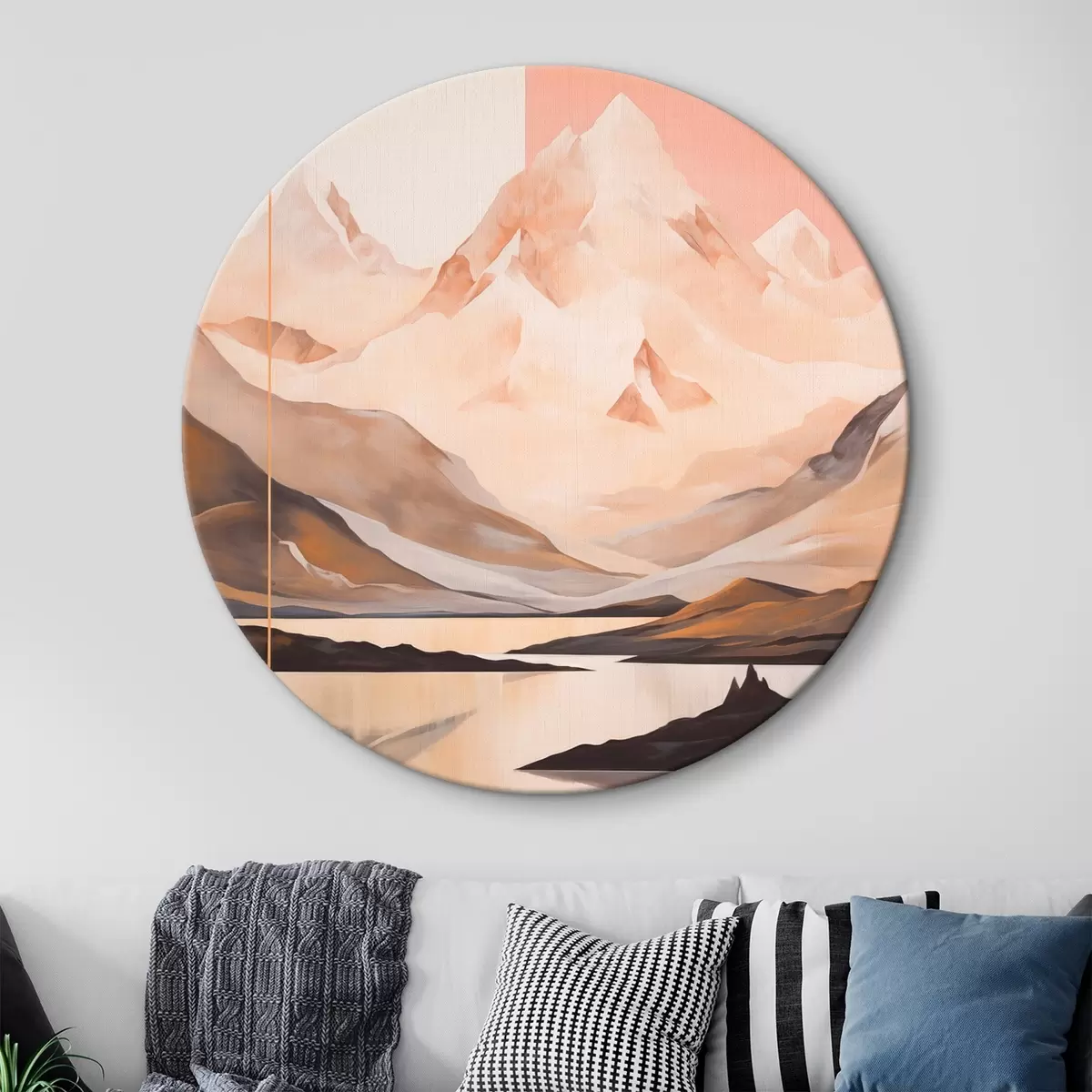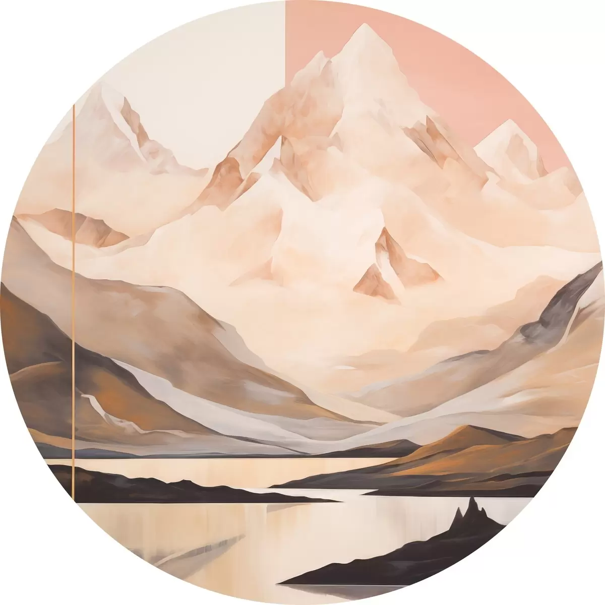Tableaux ronds Paysage abstrait avec des montagnes et un lac, couleurs pastel, style minimaliste r45949
