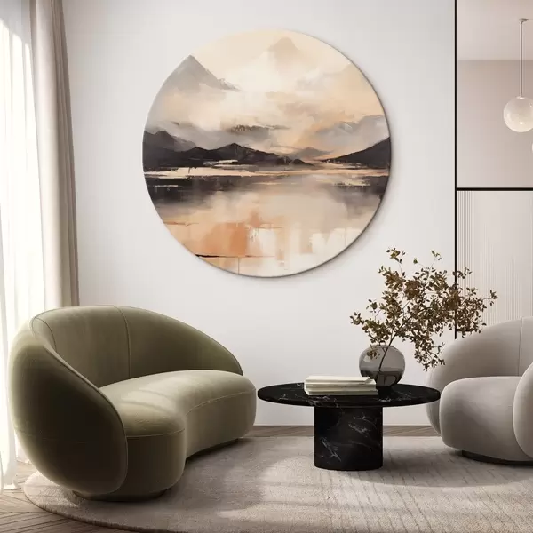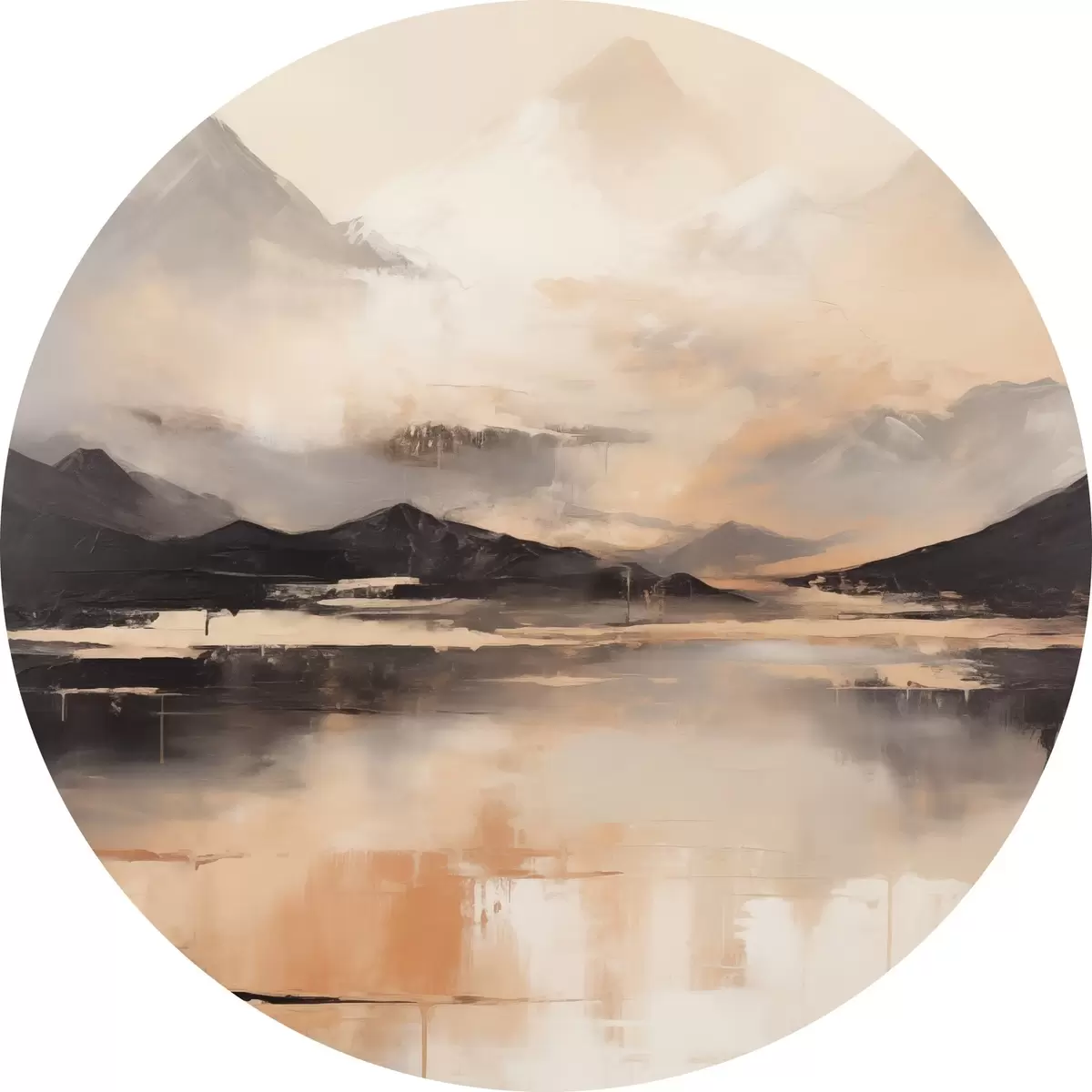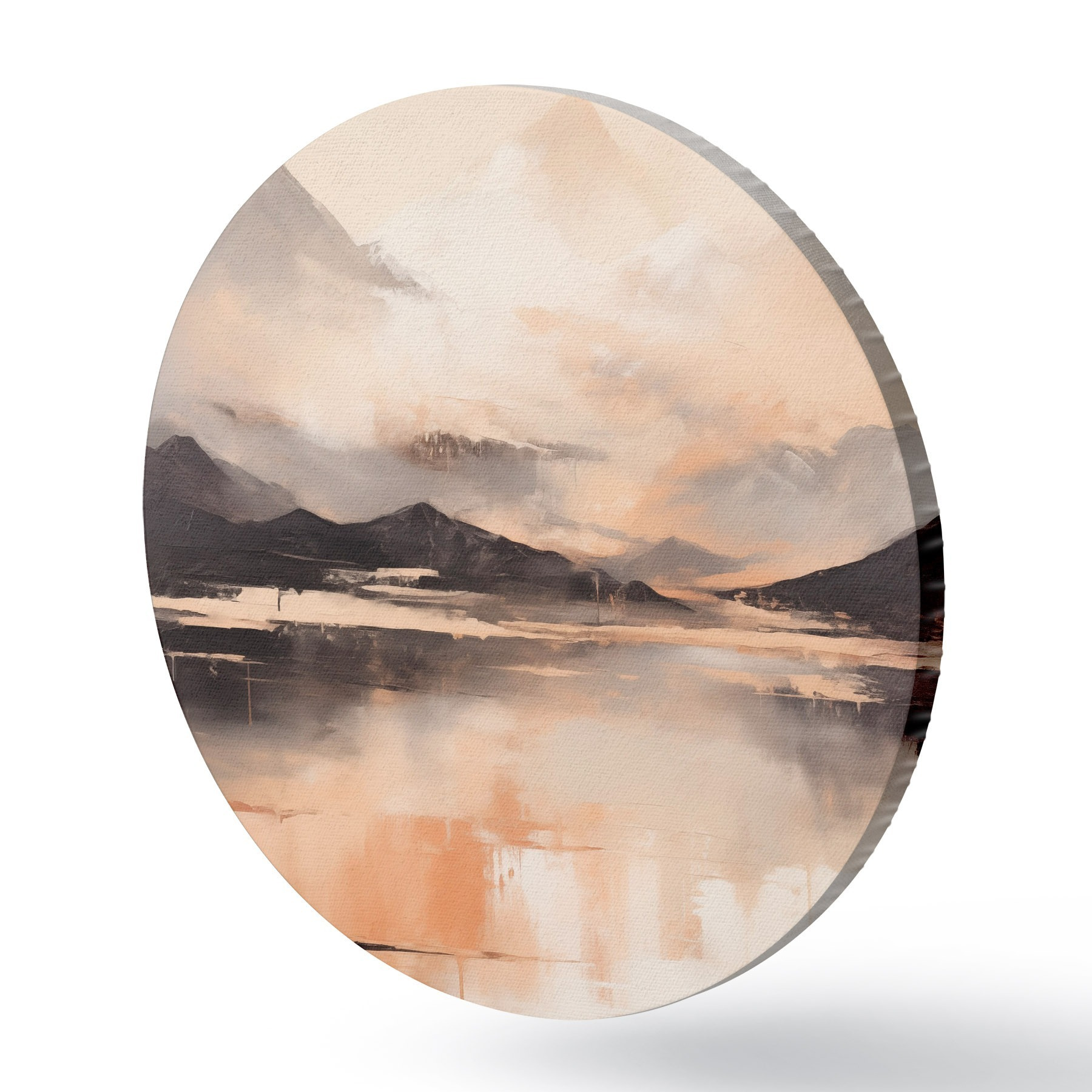 Tableaux ronds Une peinture imitant un paysage texturé représentant des montagnes et un lac r45950