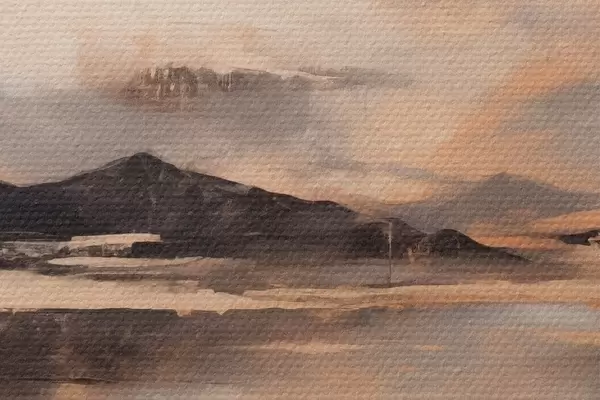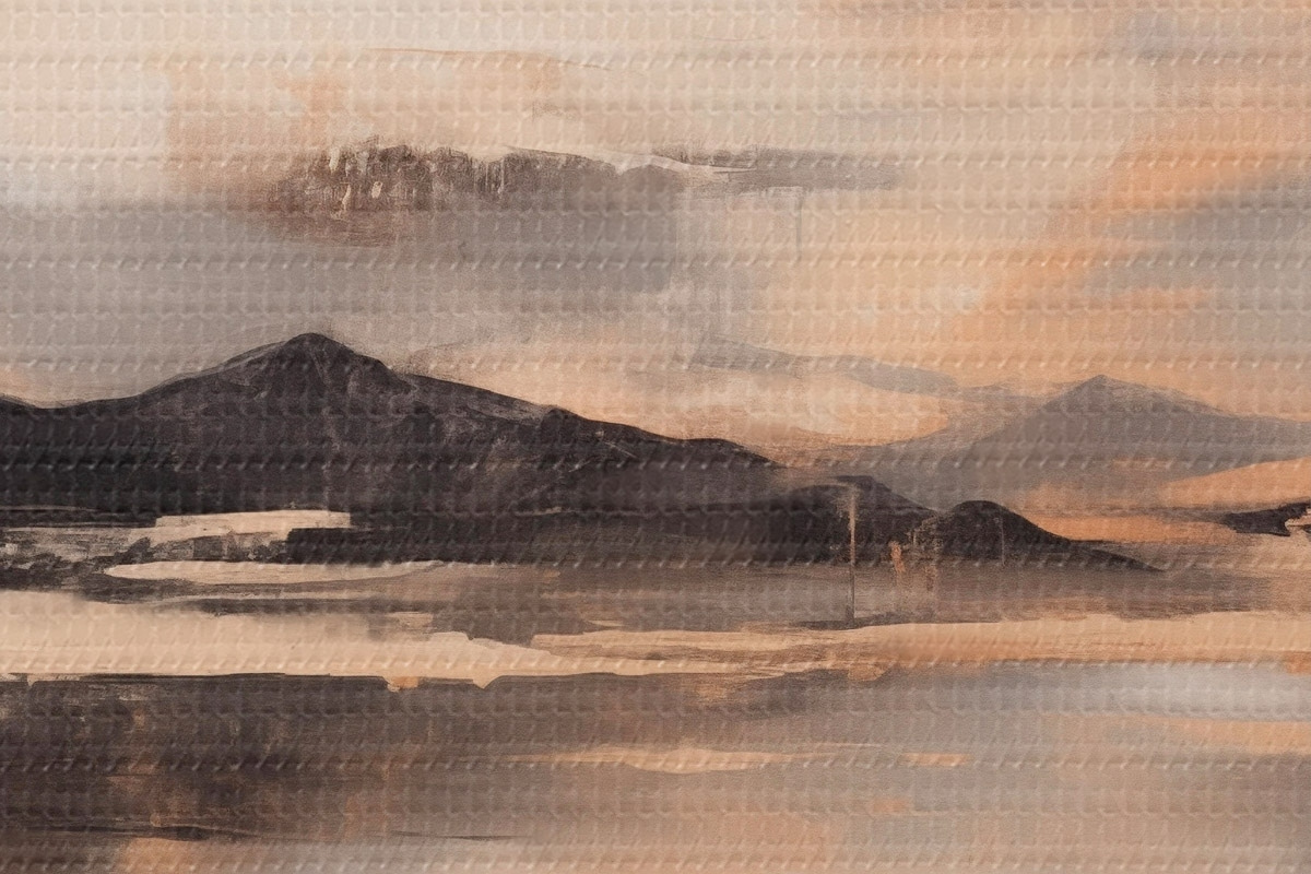 Image Une peinture imitant un paysage texturé représentant des montagnes et un lac Nr r45950