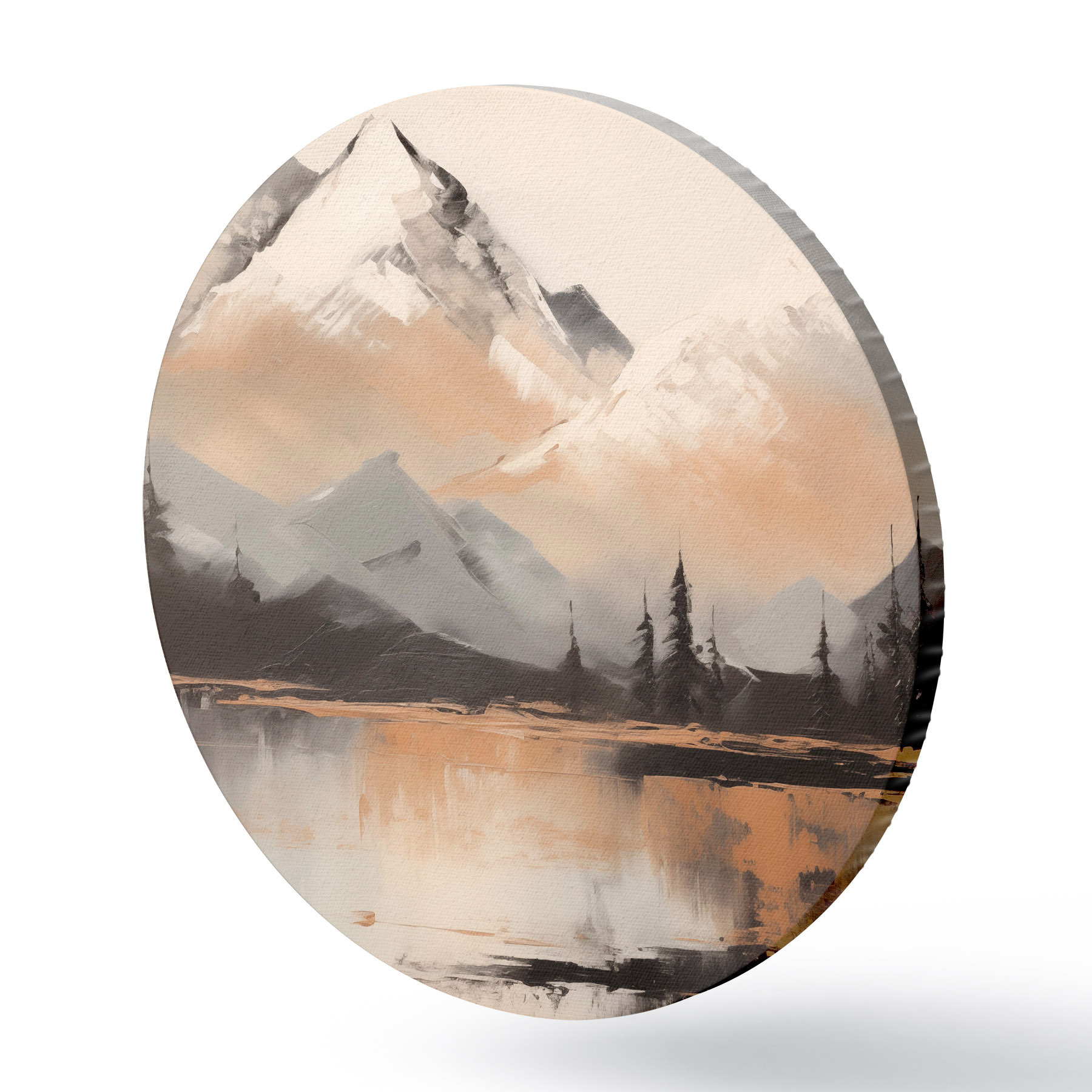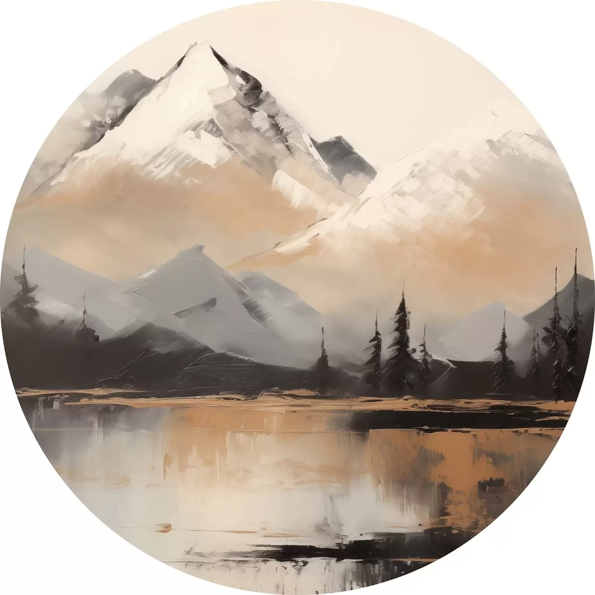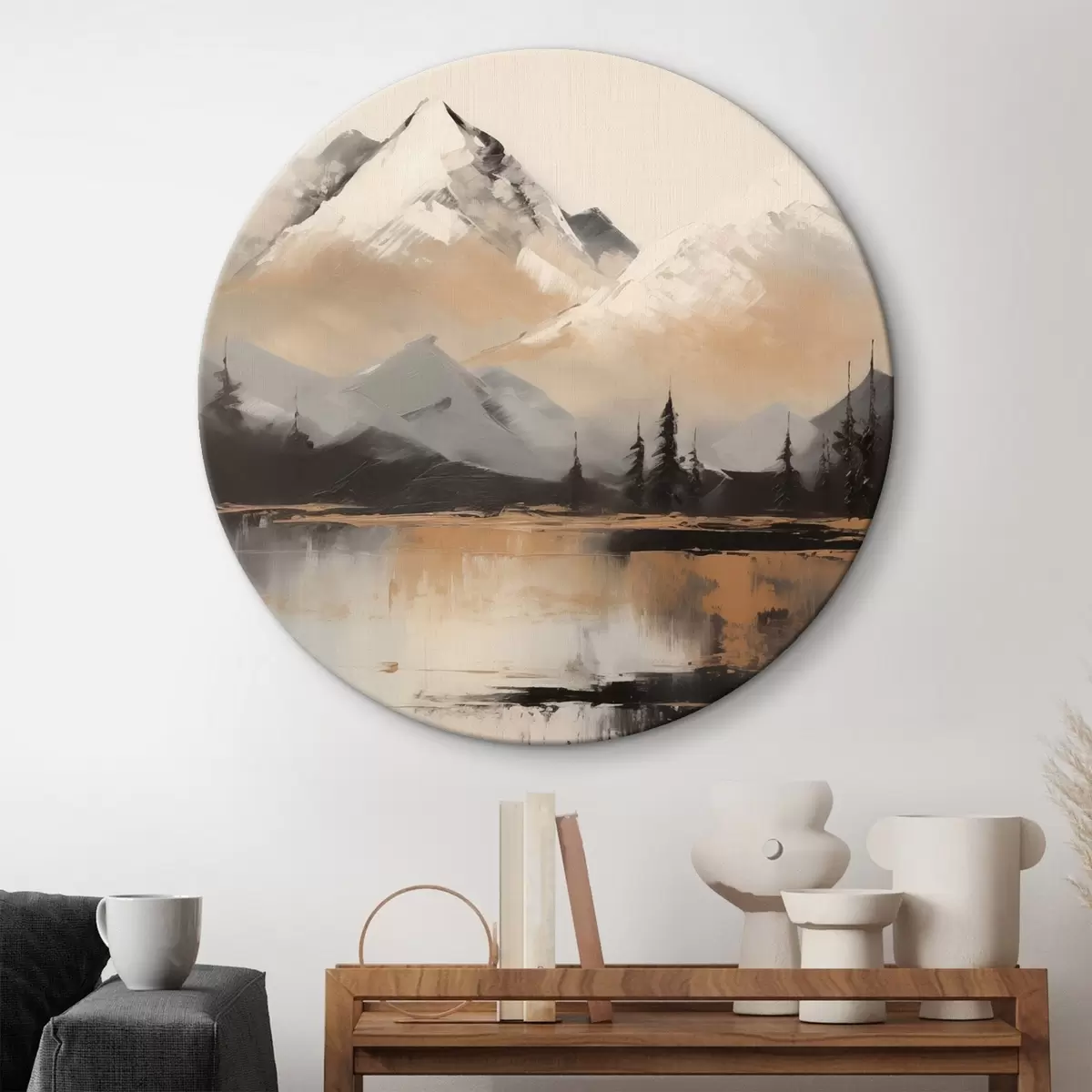 Tableaux ronds Montagnes enneigées avec quelques arbres devant un lac r45951