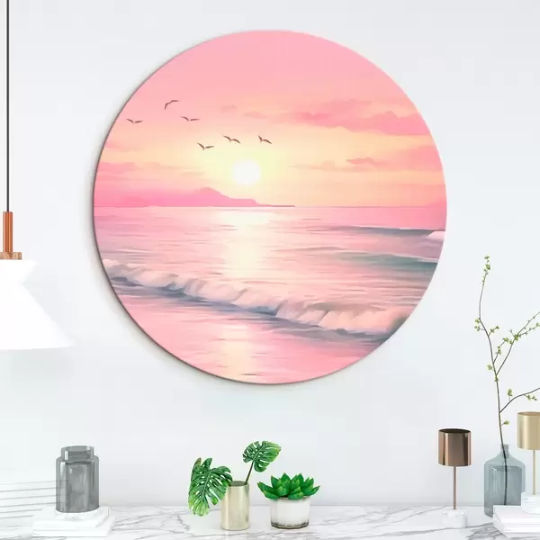 Tableaux ronds Coucher de soleil rose sur la mer r45955