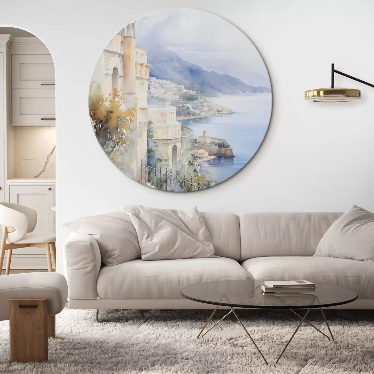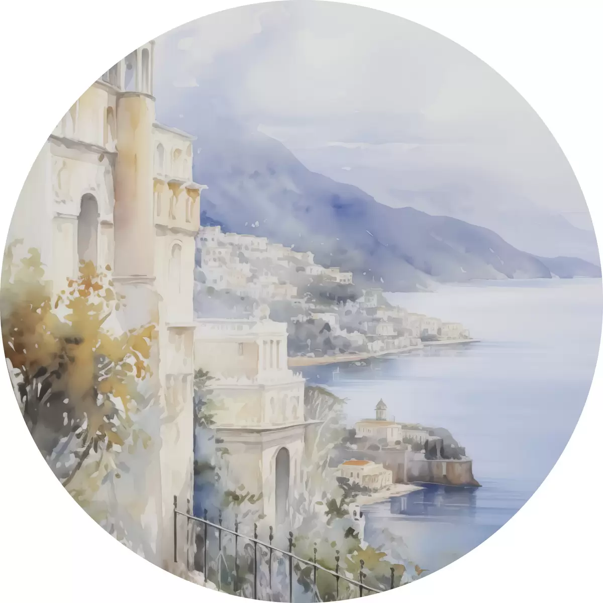 Tableaux ronds Baie près de la ville imitation aquarelle r45979