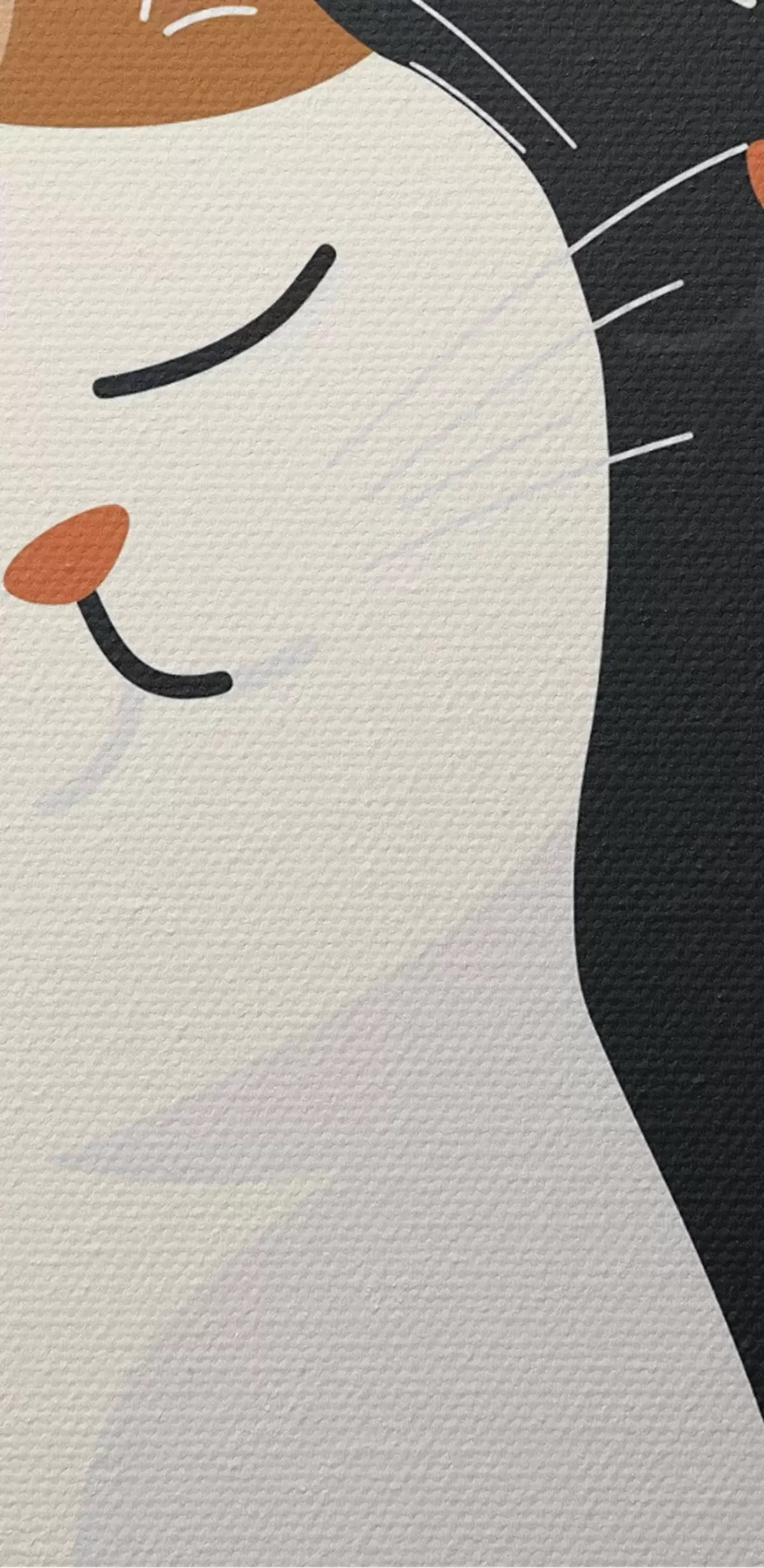 Trois types de matériaux peuvent être commandés : Economic Canvas - matériau dense et durable pour l'impression numérique, identique à la toile de peintre, surface imperméable, reproduction réaliste des détails, matériau à grain moyen. Premium Canvas - la texture ressemble à celle d'une toile de peintre (petits fils entrelacés). Reproduction douce et détaillée de l'image sur une surface mate. Eco-Premium - tissu 100 % coton de haute qualité. Grâce aux fibres naturelles de coton, le matériau est durable et résistant à l'usure. Excellente reproduction des couleurs et des détails.