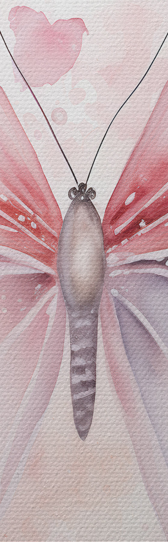 Tableaux ronds Papillon rose, technique aquarelle r46073