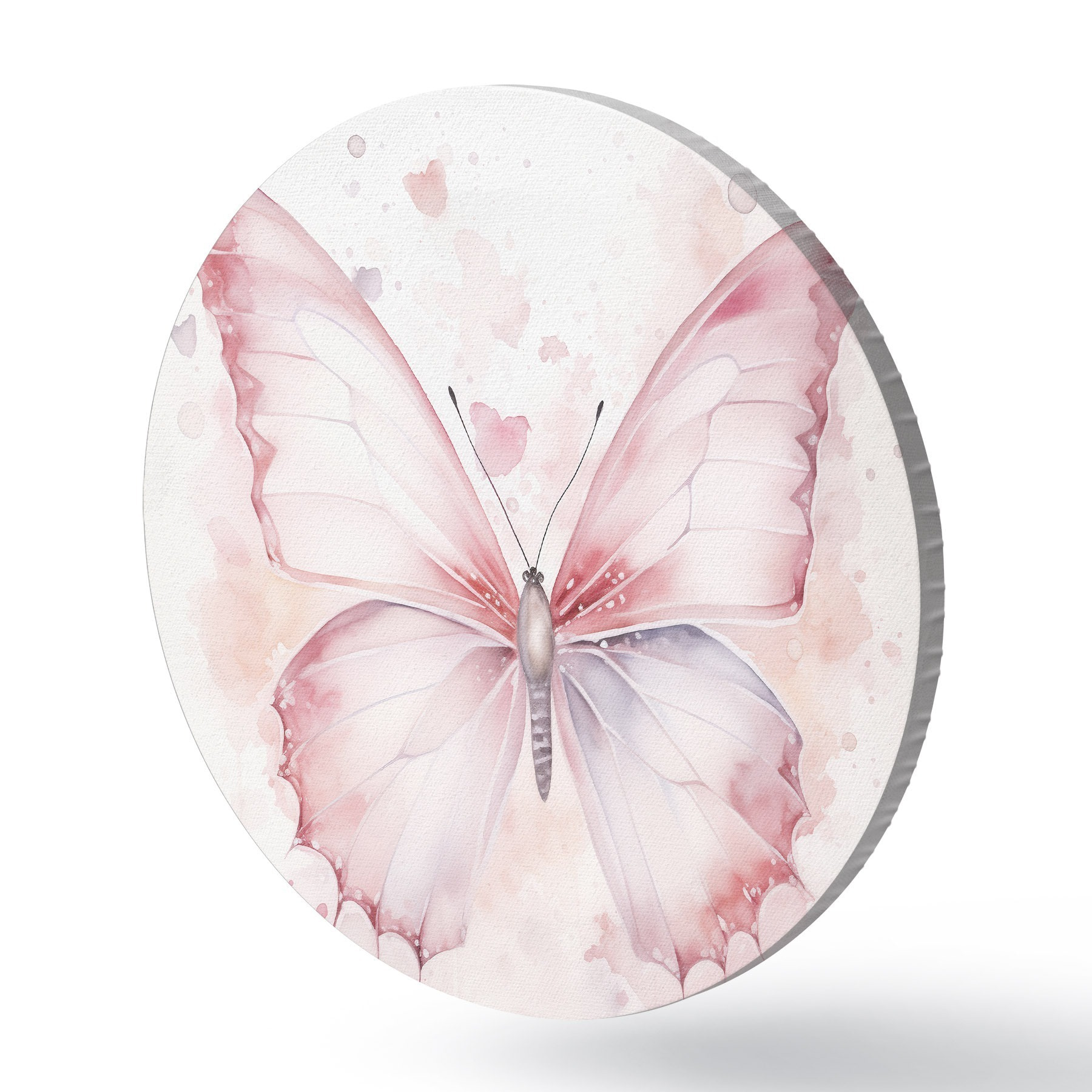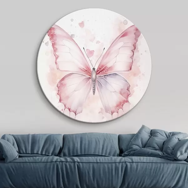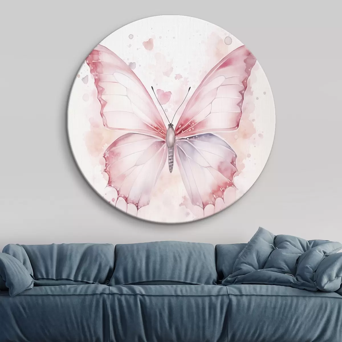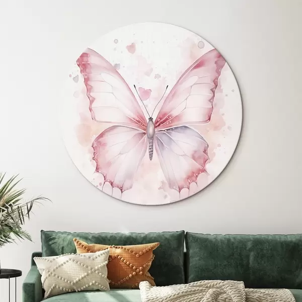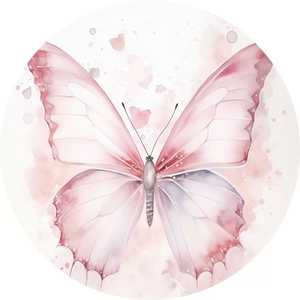 Tableaux ronds Papillon rose, technique aquarelle r46073