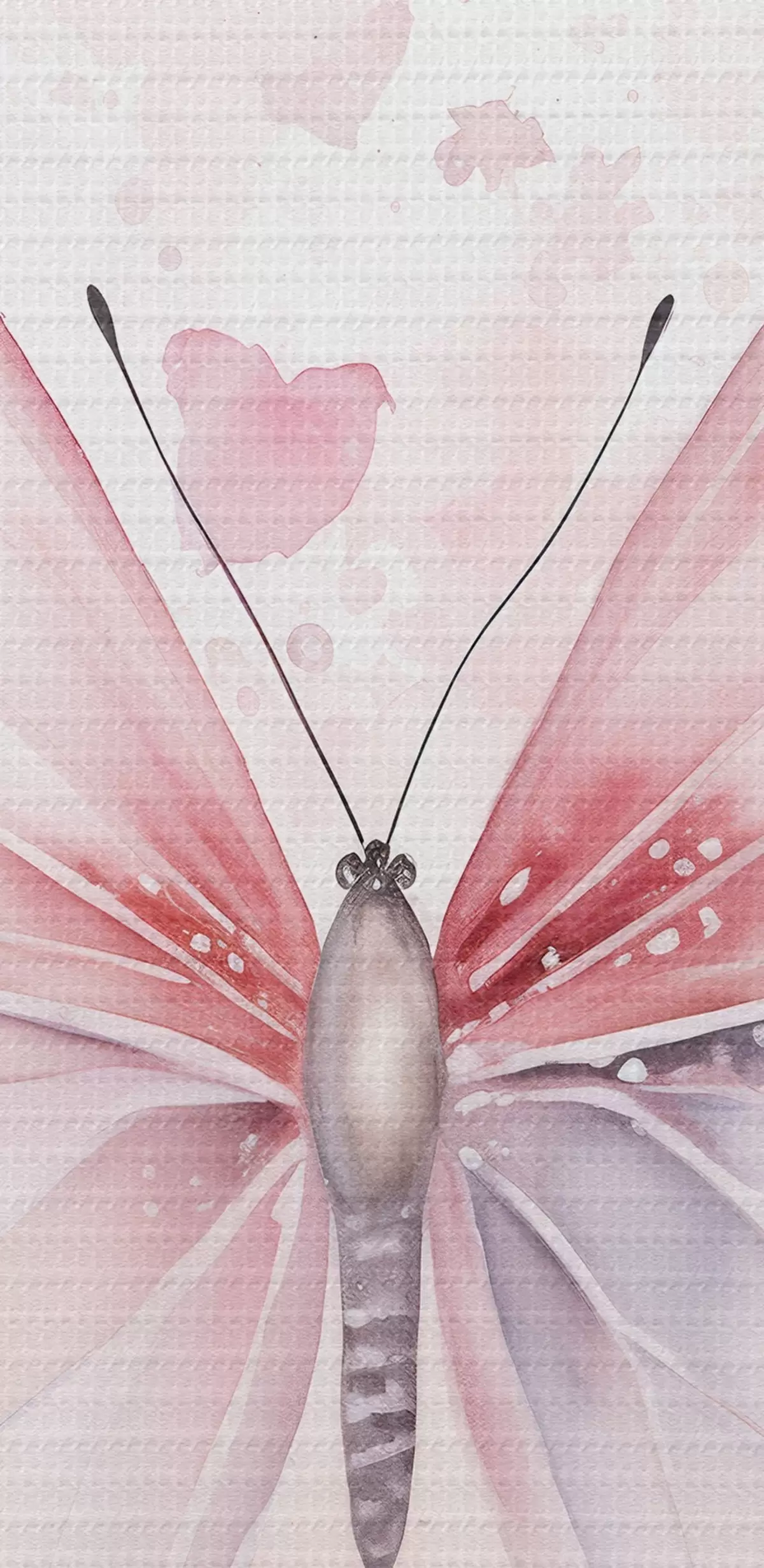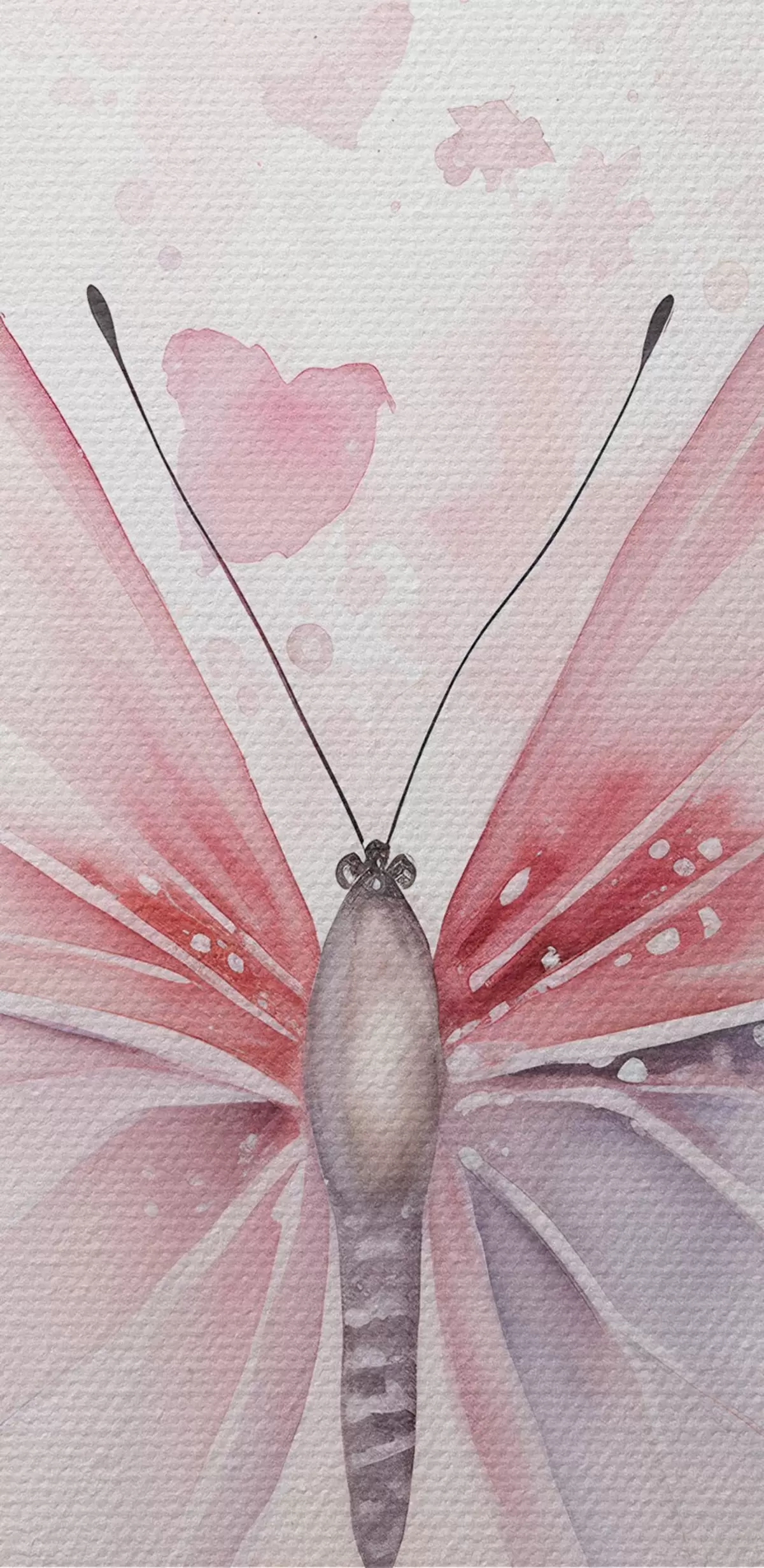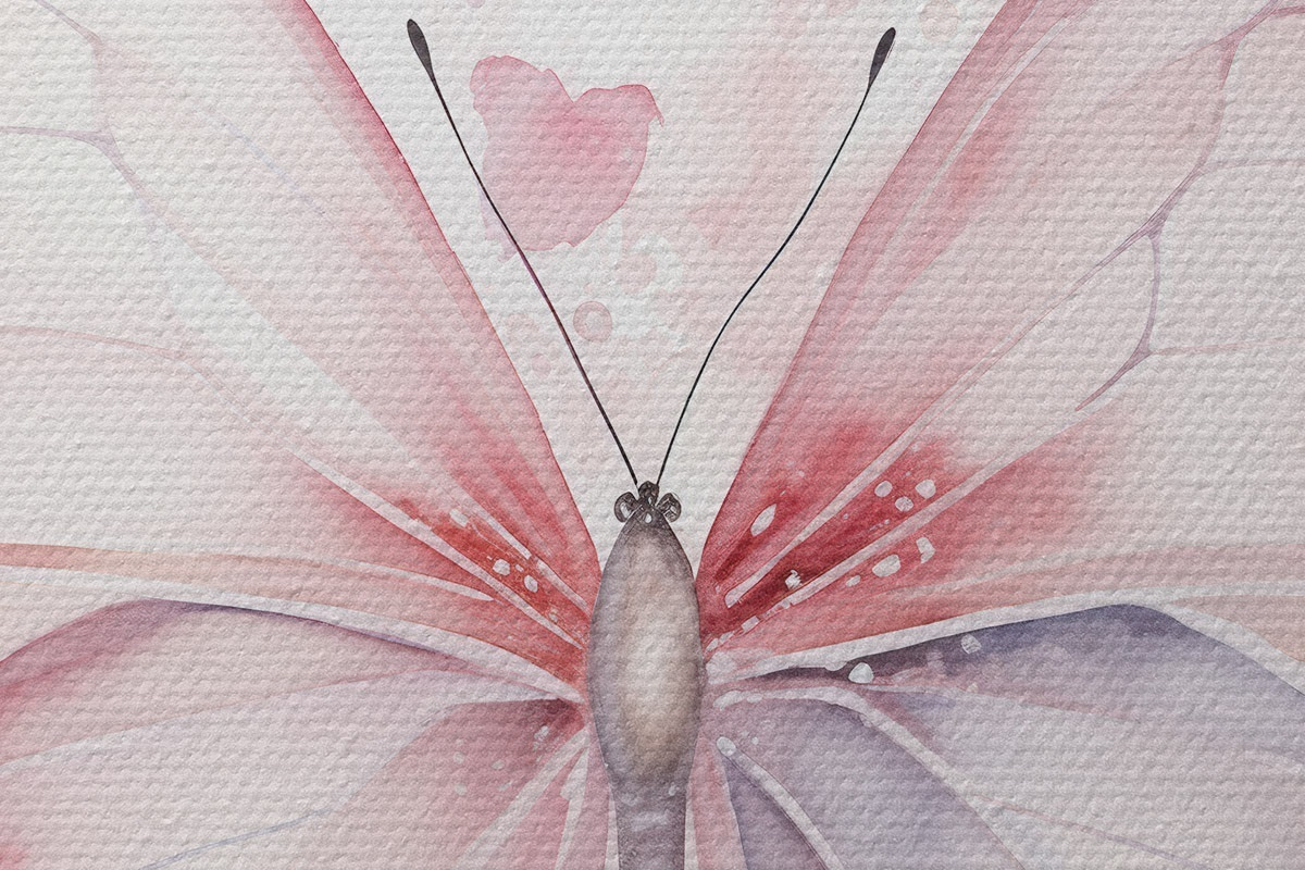 Tableaux ronds Papillon rose, technique aquarelle r46073