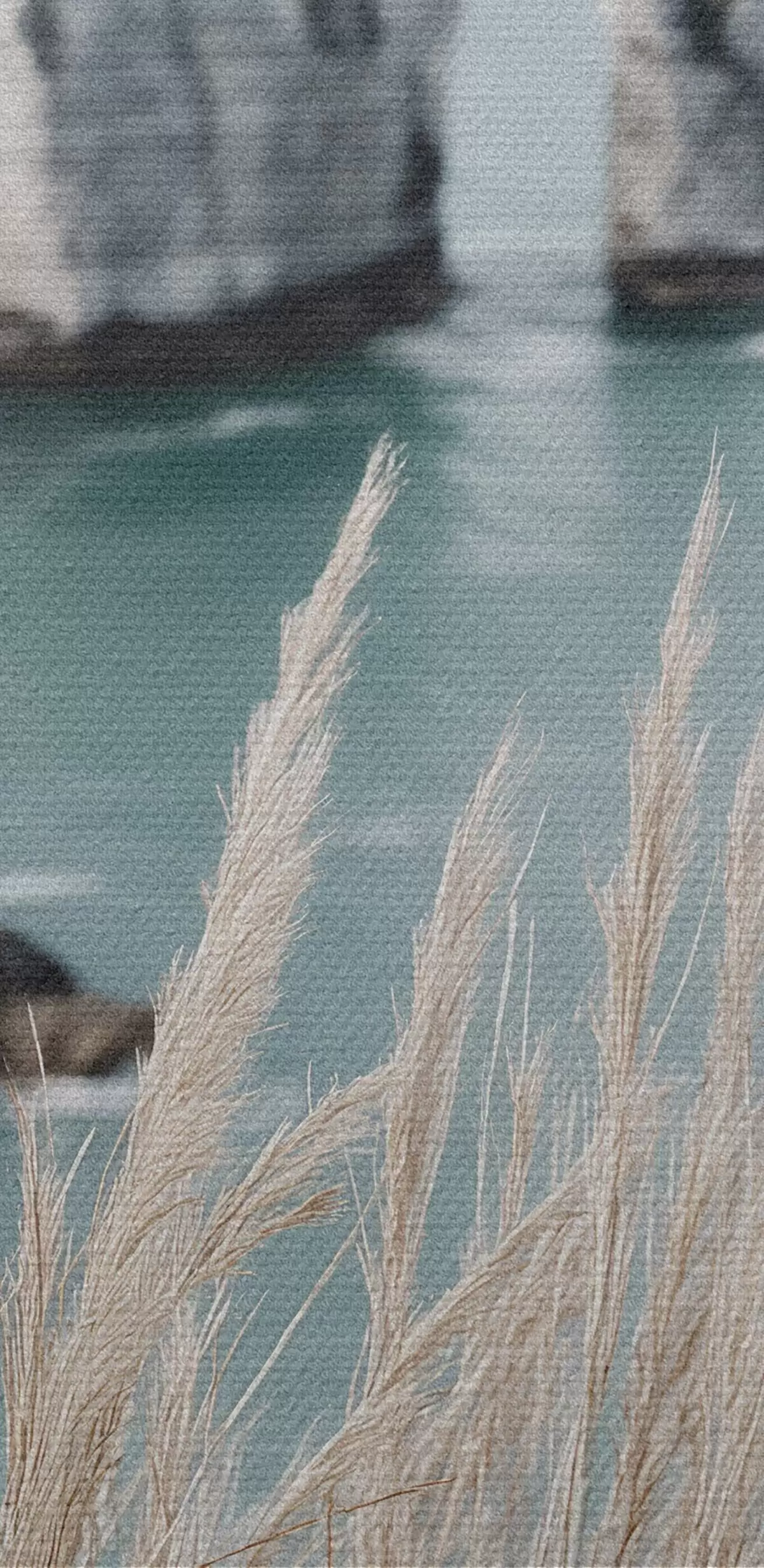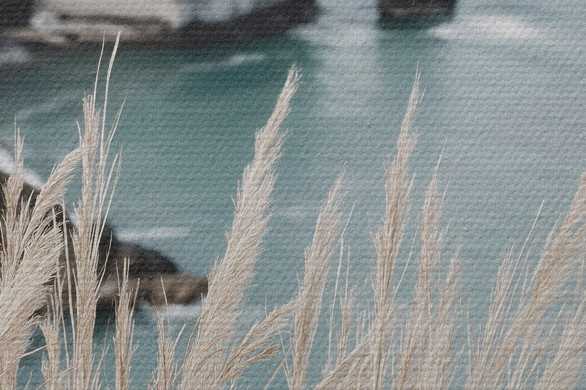 Image Mer et arche rocheuse, vue à travers les herbes sèches Nr r46142