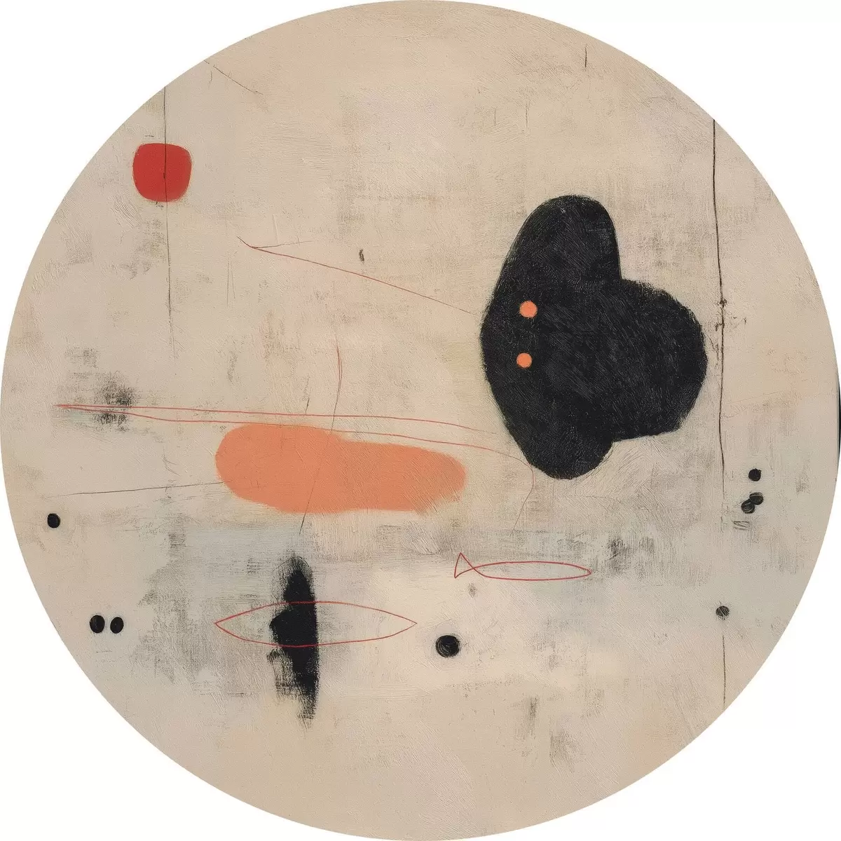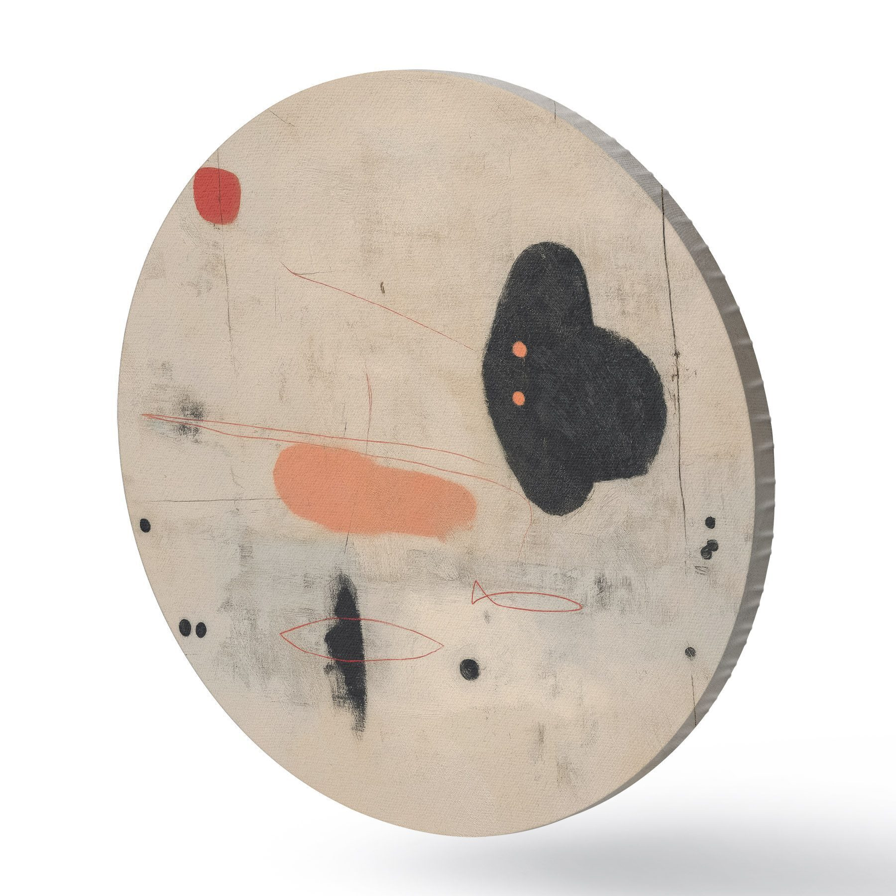 Tableaux ronds Dessin abstrait minimaliste avec des accents noirs et corail r46159