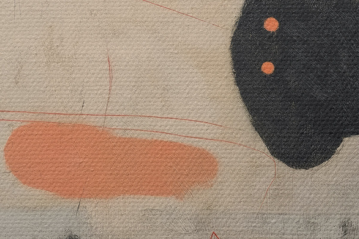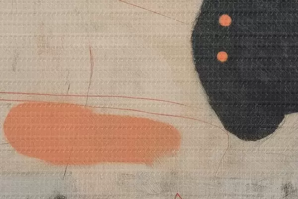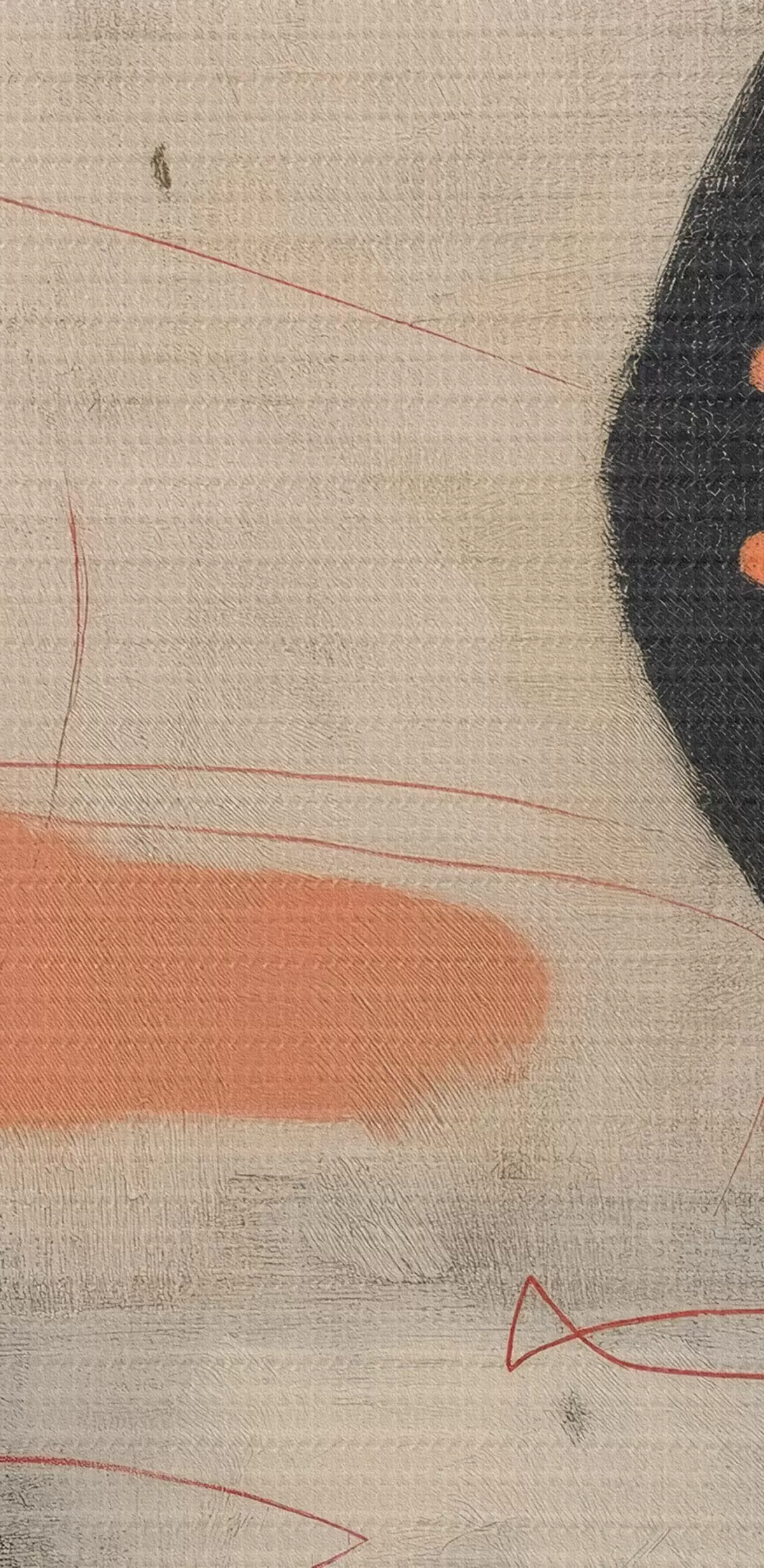 Image Dessin abstrait minimaliste avec des accents noirs et corail Nr r46159