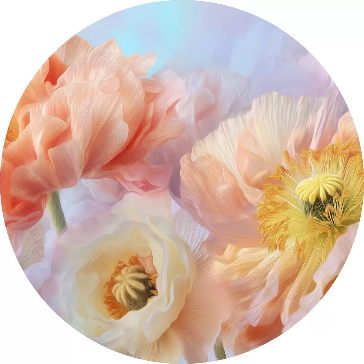 Tableaux ronds Fleurs délicates aux tons pastel avec un éclairage doux r46160