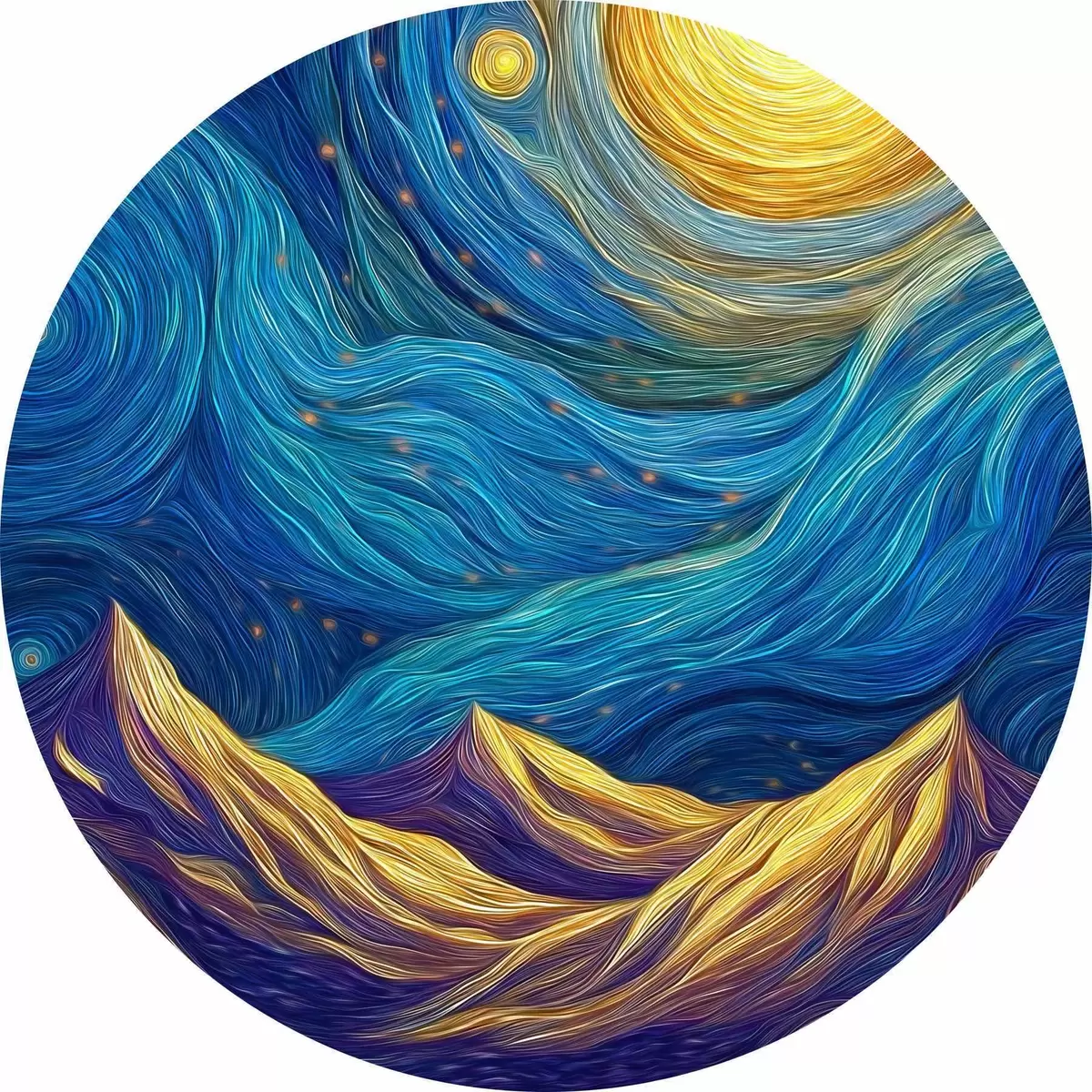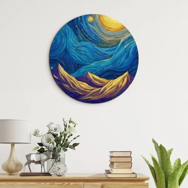 Tableaux ronds Ciel étoilé lumineux au-dessus des sommets montagneux r46168