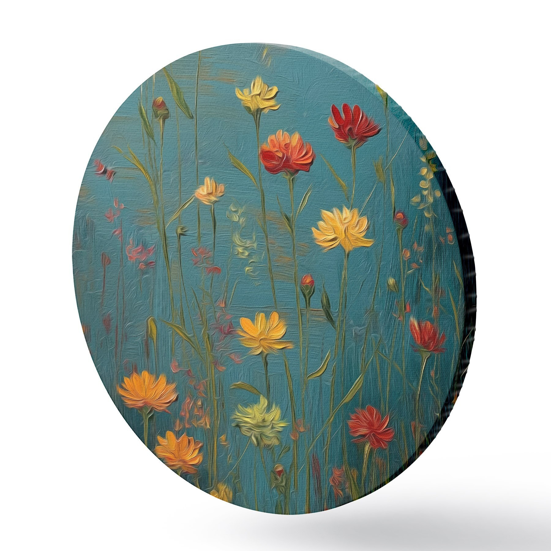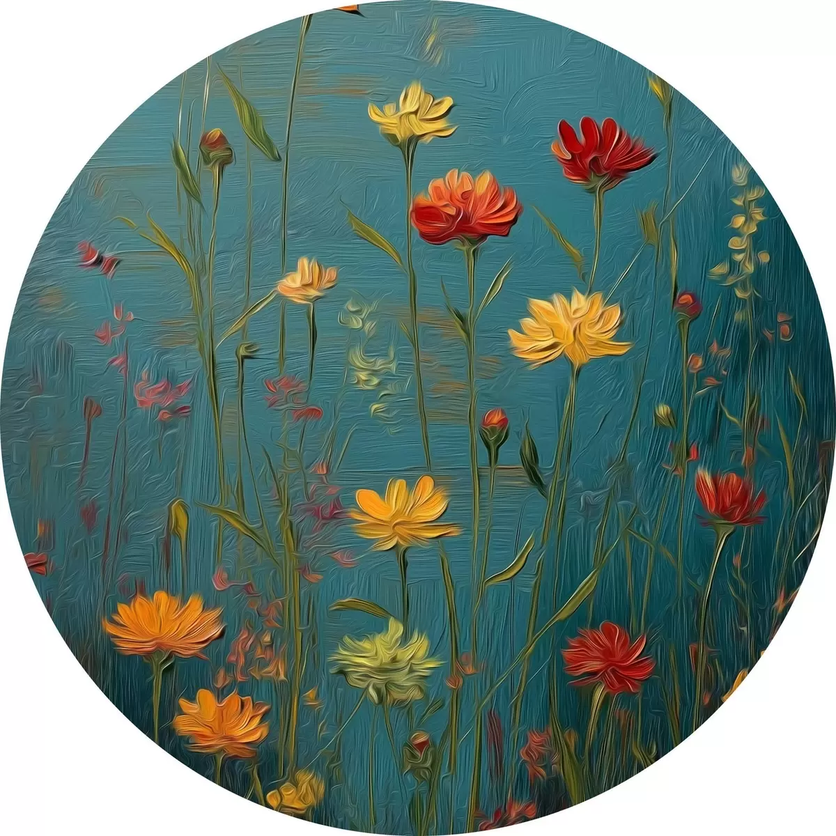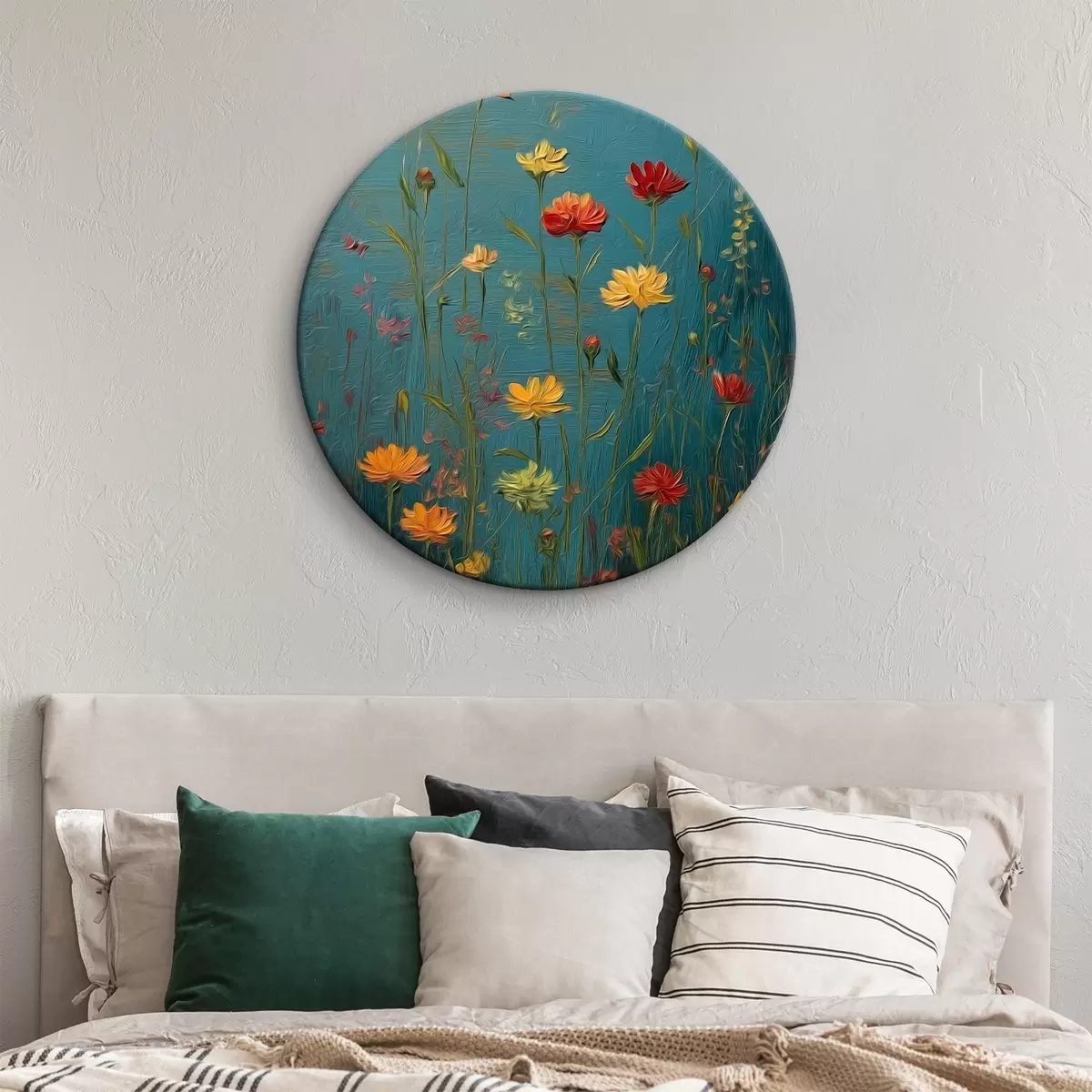 Tableaux ronds Fleurs sauvages sur fond turquoise foncé r46169