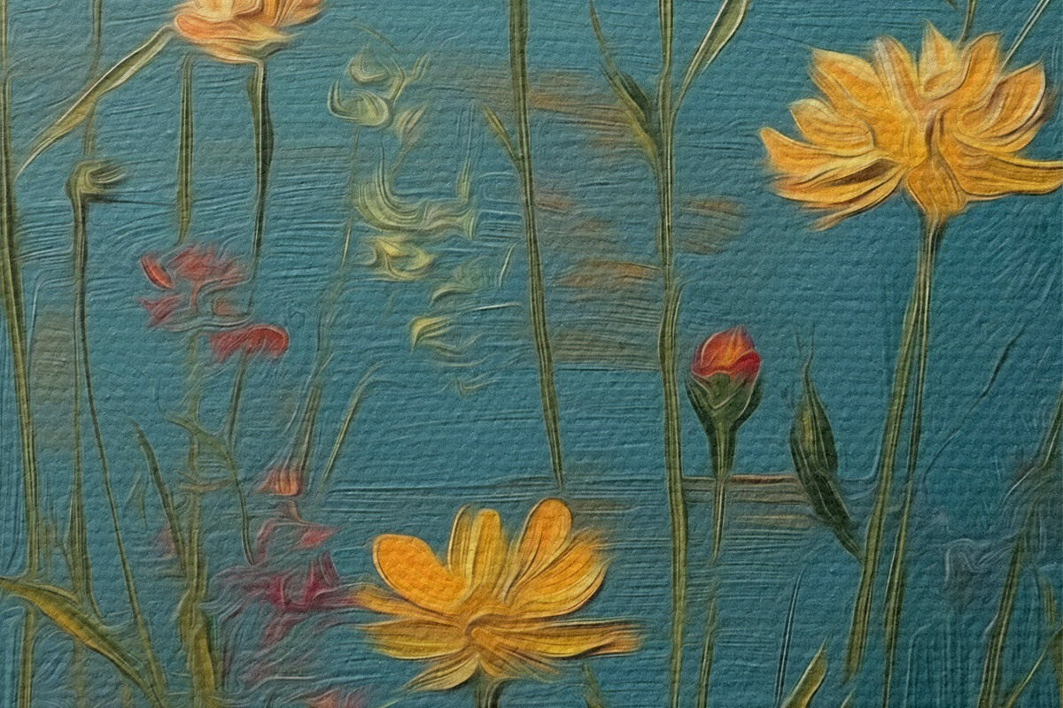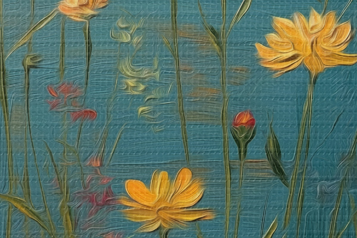Image Fleurs sauvages sur fond turquoise foncé Nr r46169