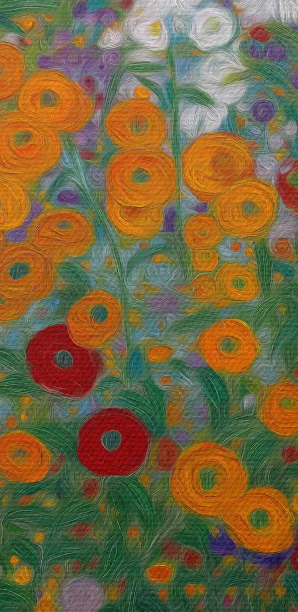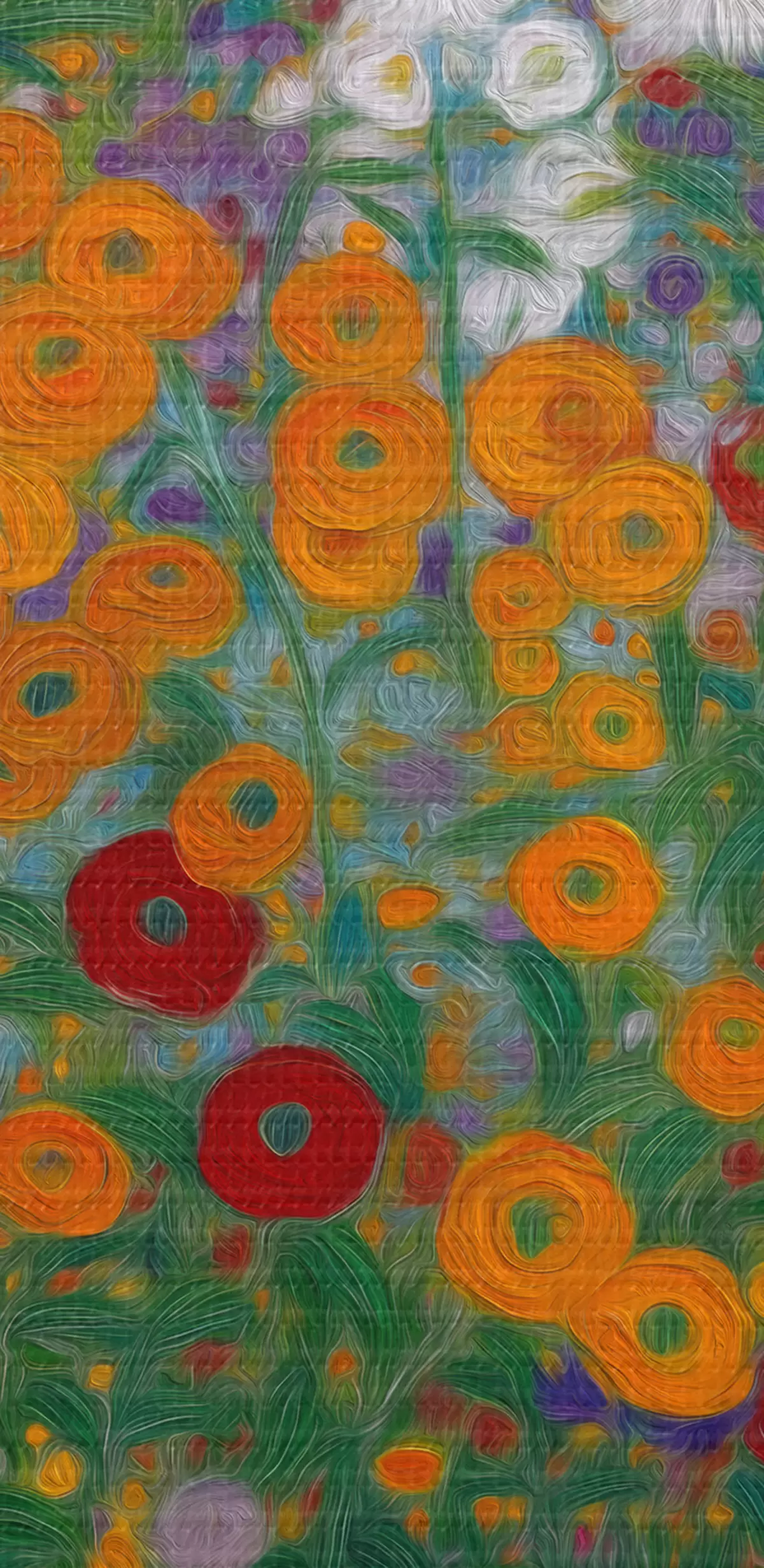 Tableaux ronds Champ de fleurs coloré avec des touches de blanc r46172