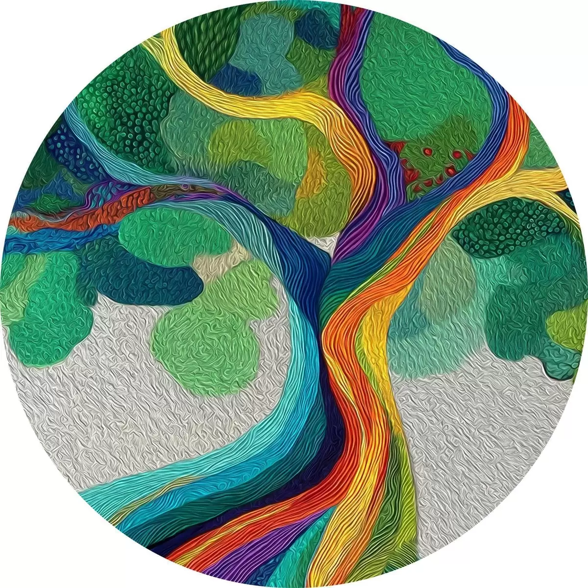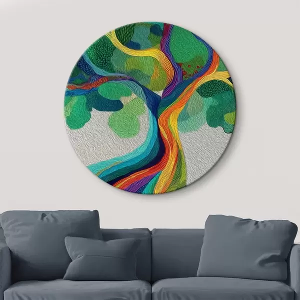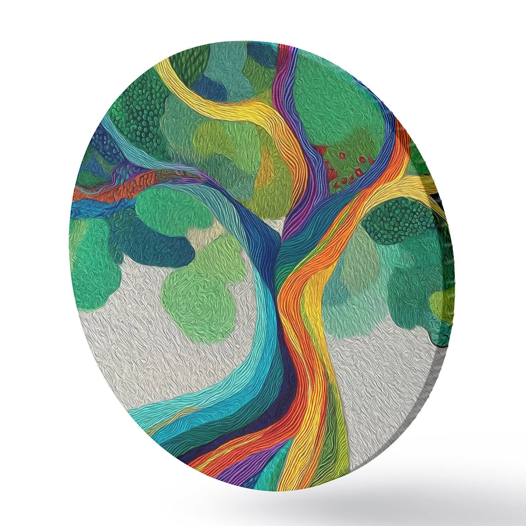Tableaux ronds Arbre aux branches arc-en-ciel sur fond vert r46173
