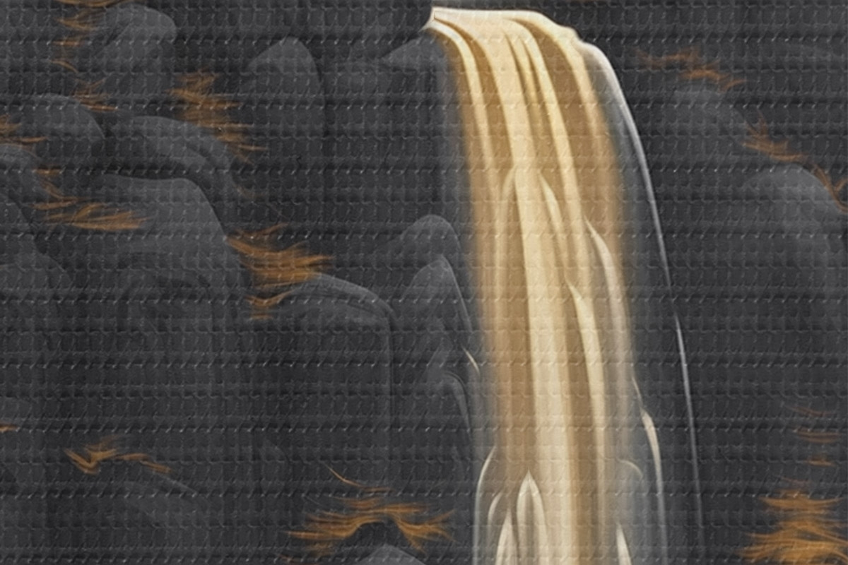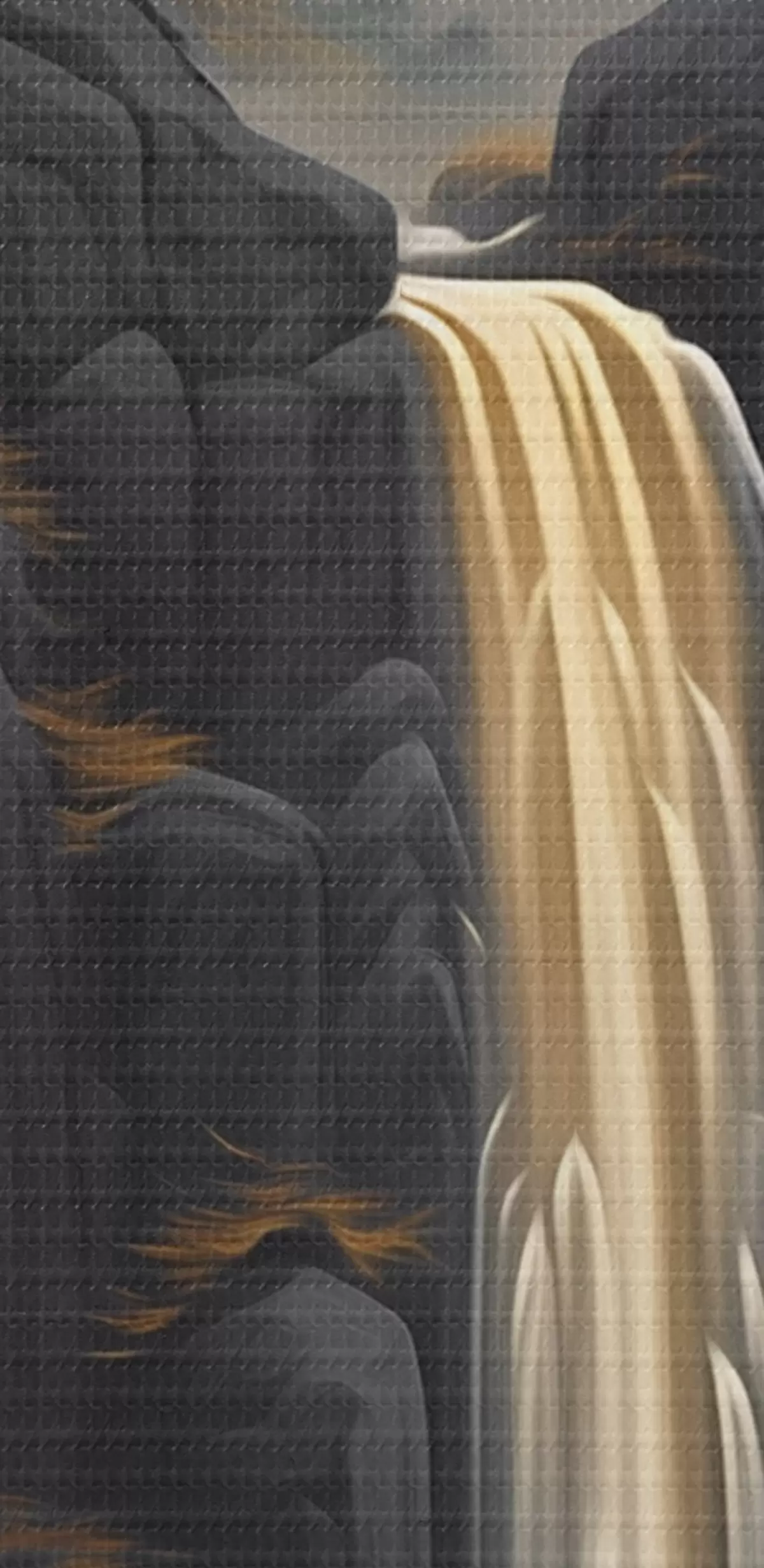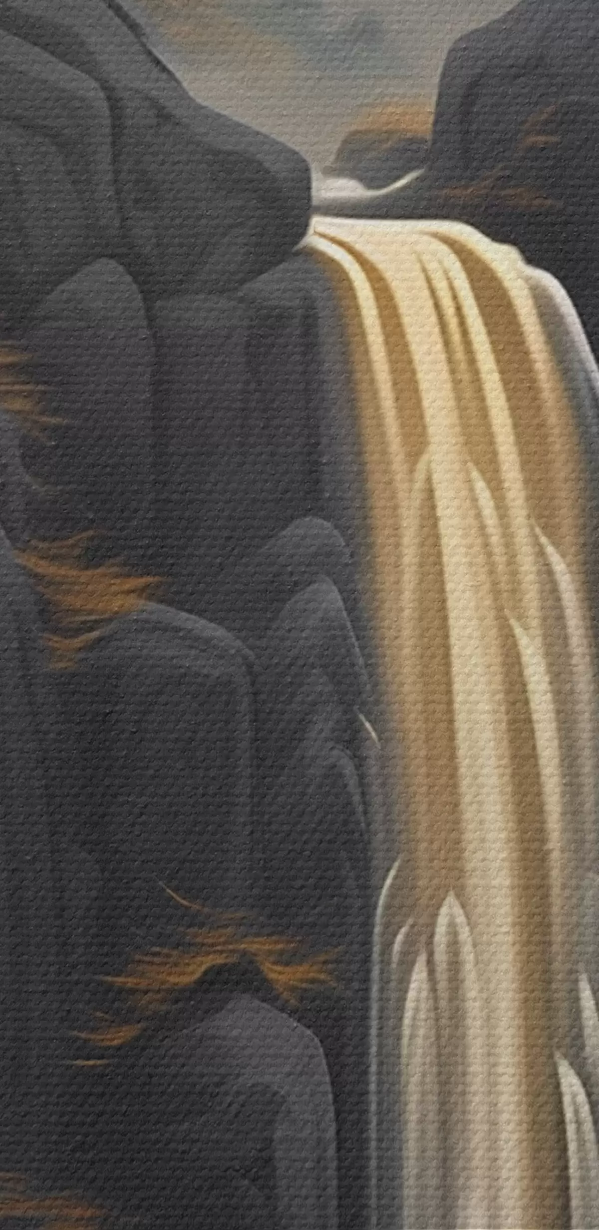 Image Paysage rocheux avec une cascade dans les tons chauds du coucher de soleil Nr r46177