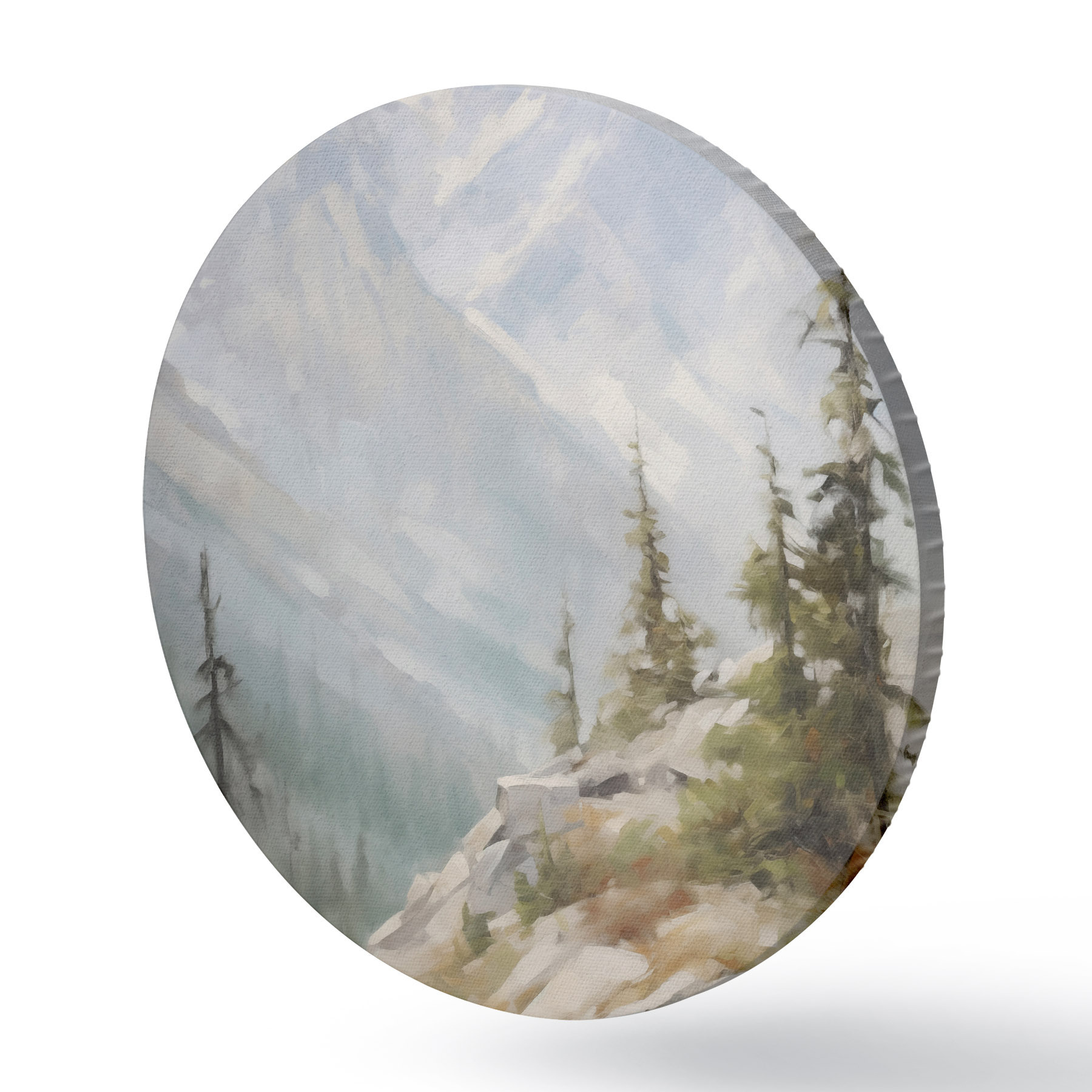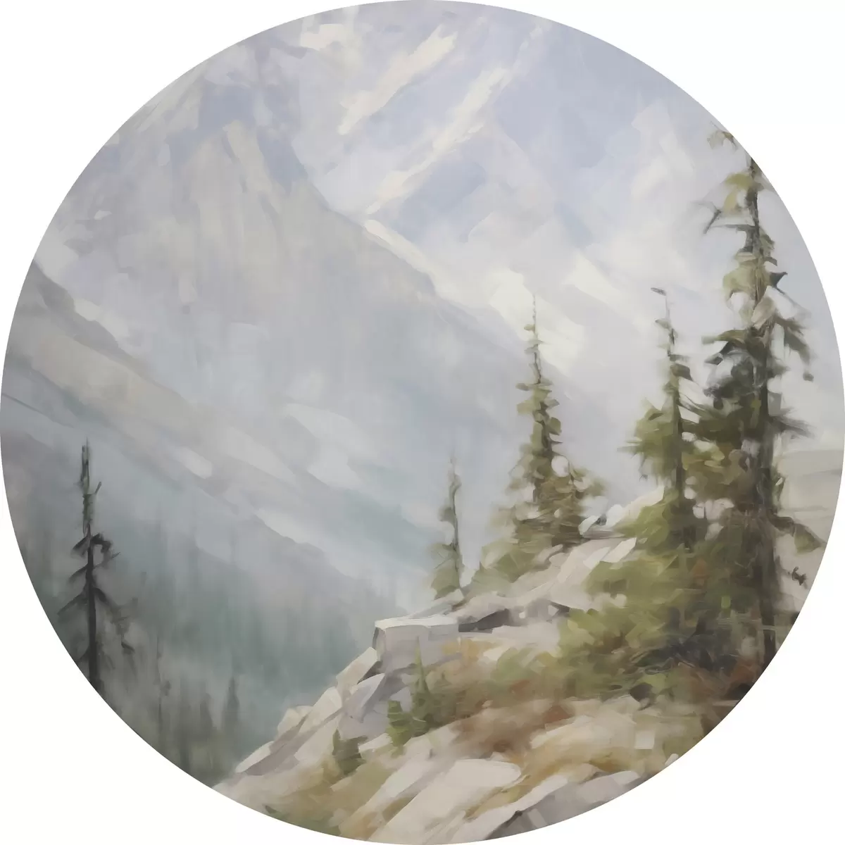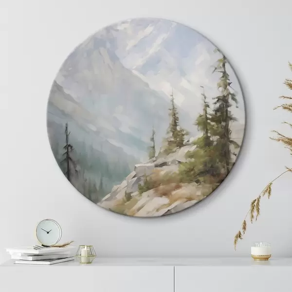 Tableaux ronds Des épicéas avec les montagnes en toile de fond r46202
