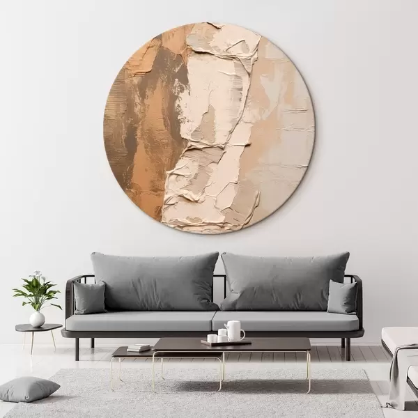 Tableaux ronds Peinture abstraite aux coups de pinceau épais, tons beiges et bruns, surface texturée, palette de couleurs neutres r46272