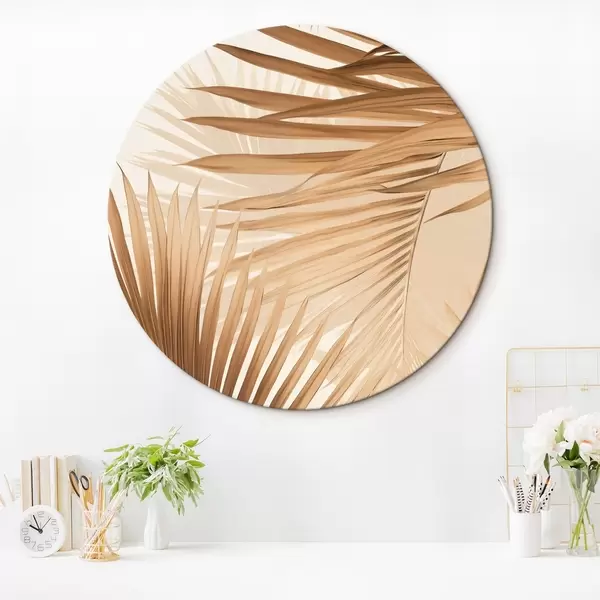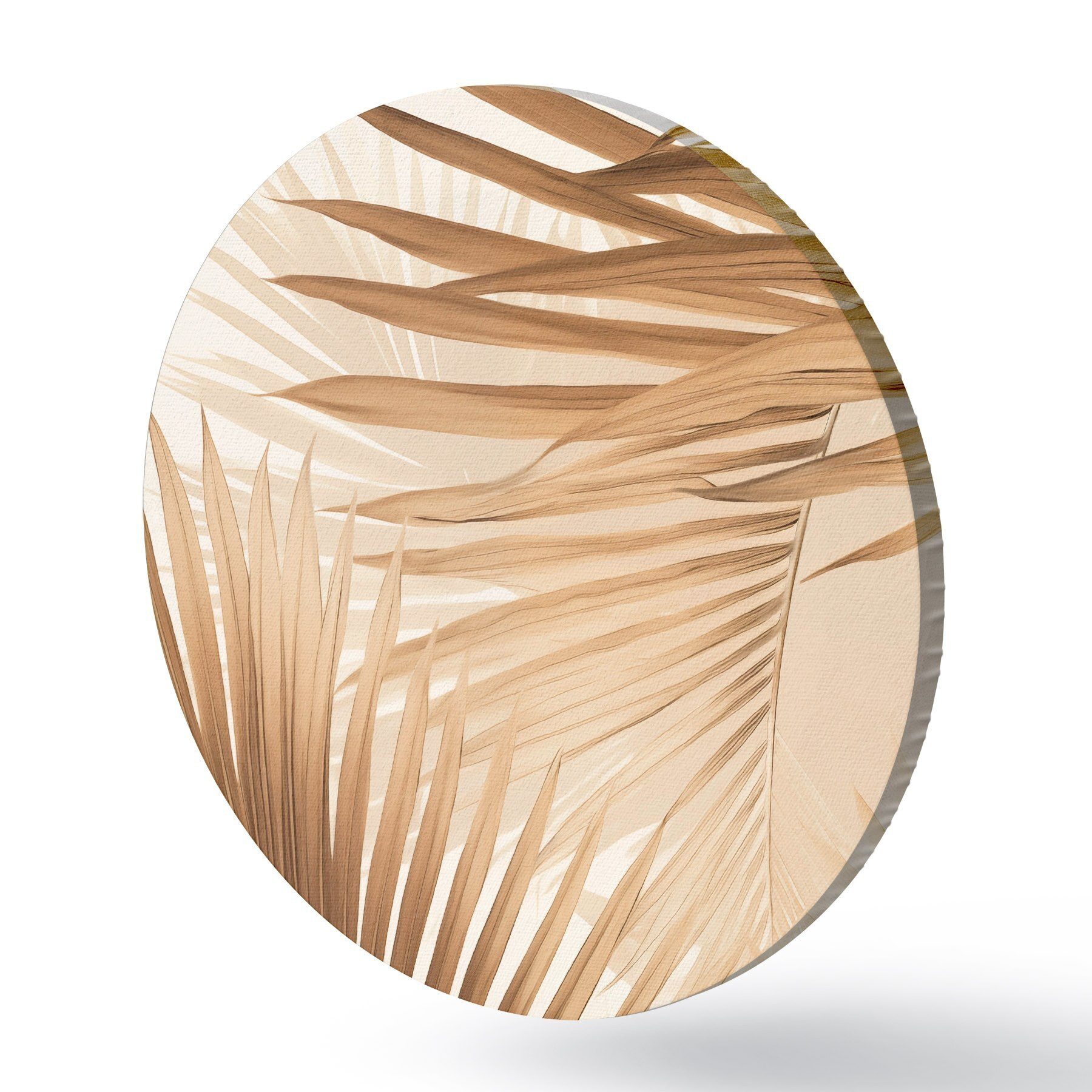 Tableaux ronds Feuilles de palmier abstraites dans des tons bruns, tropical, botanique, nature, minimaliste, élégant, design moderne r46275