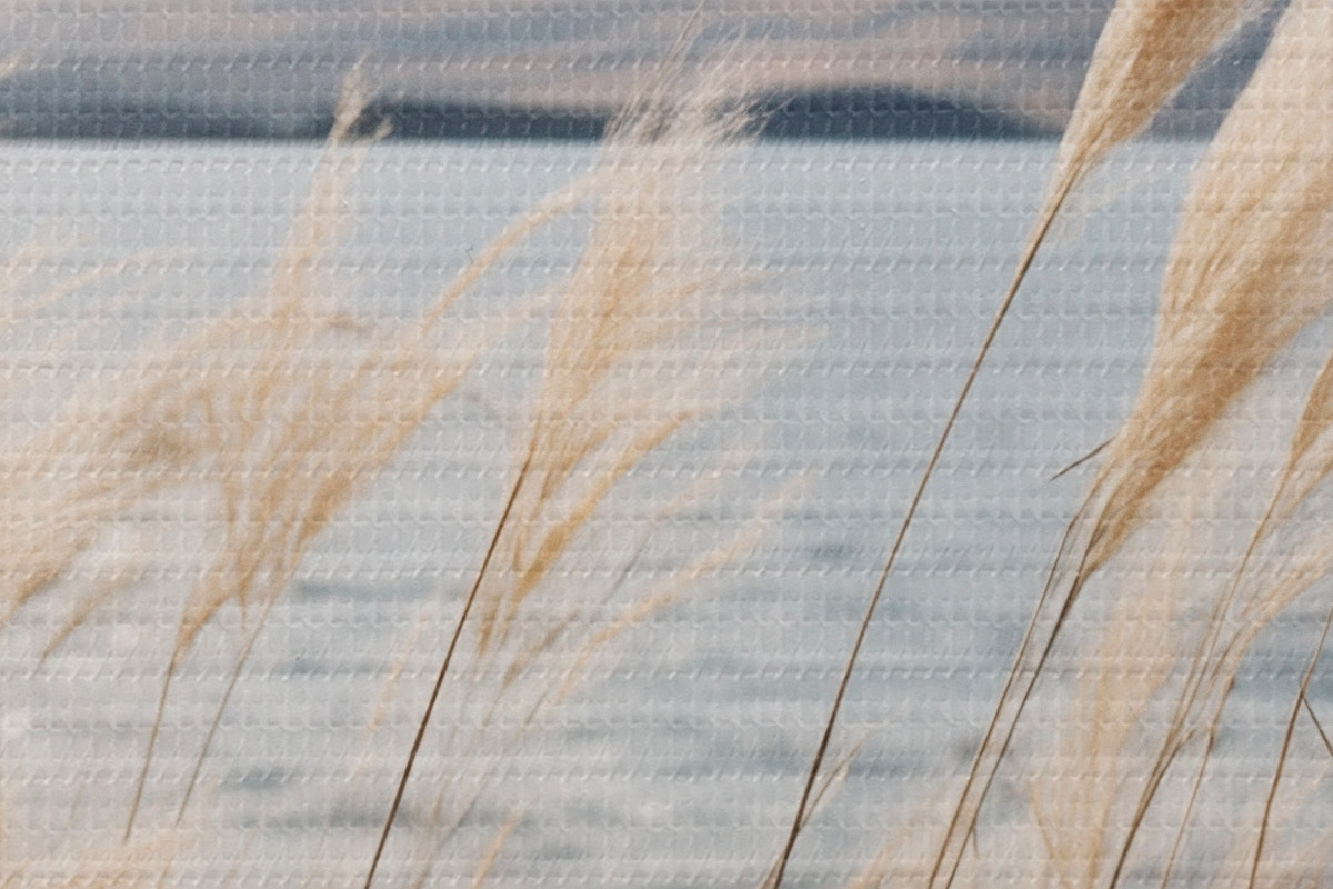 Image Herbe de la pampa avec un lac et des montagnes en arrière-plan, éclairage tamisé, couleurs douces, style naturaliste Nr r46283