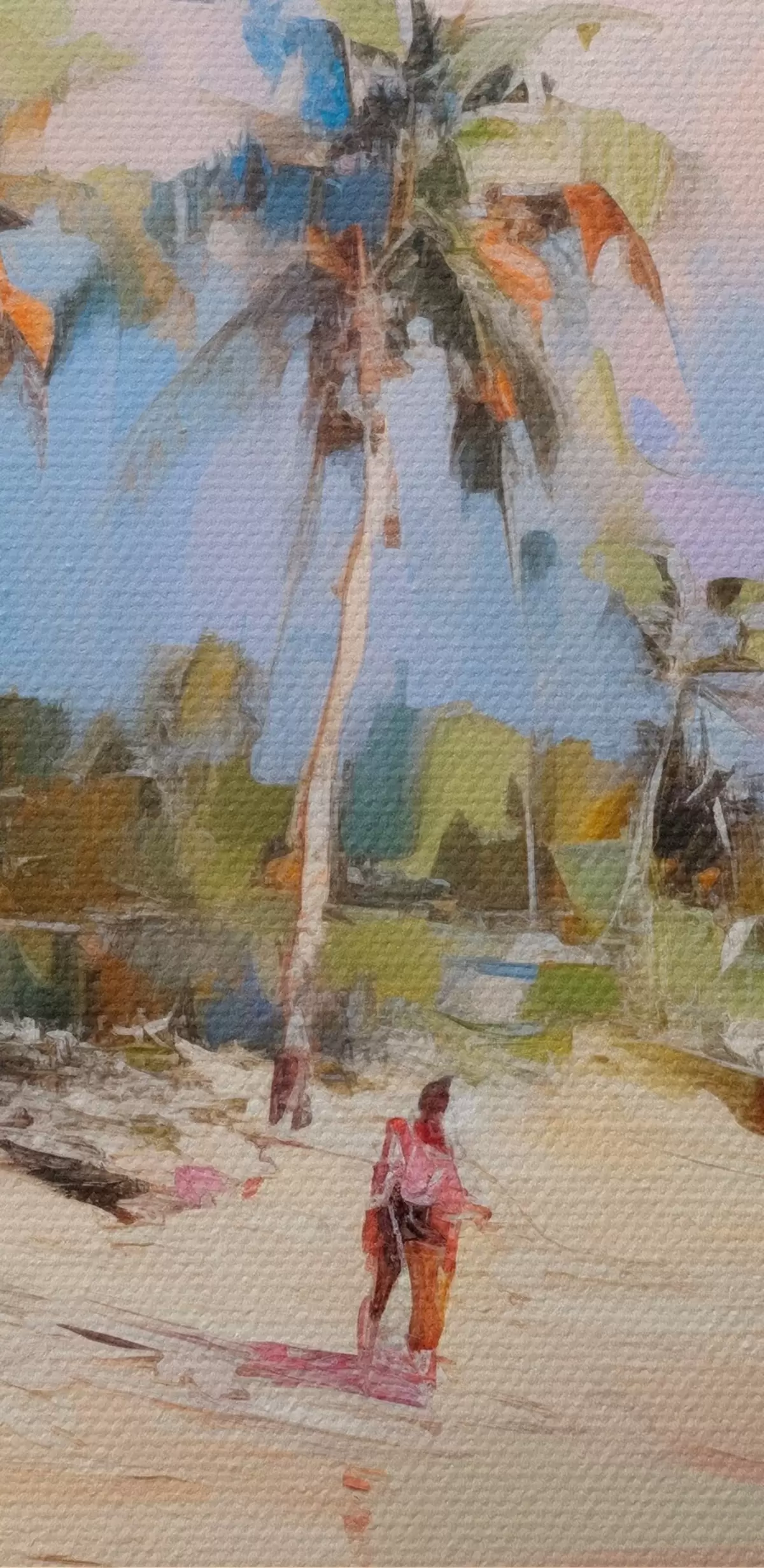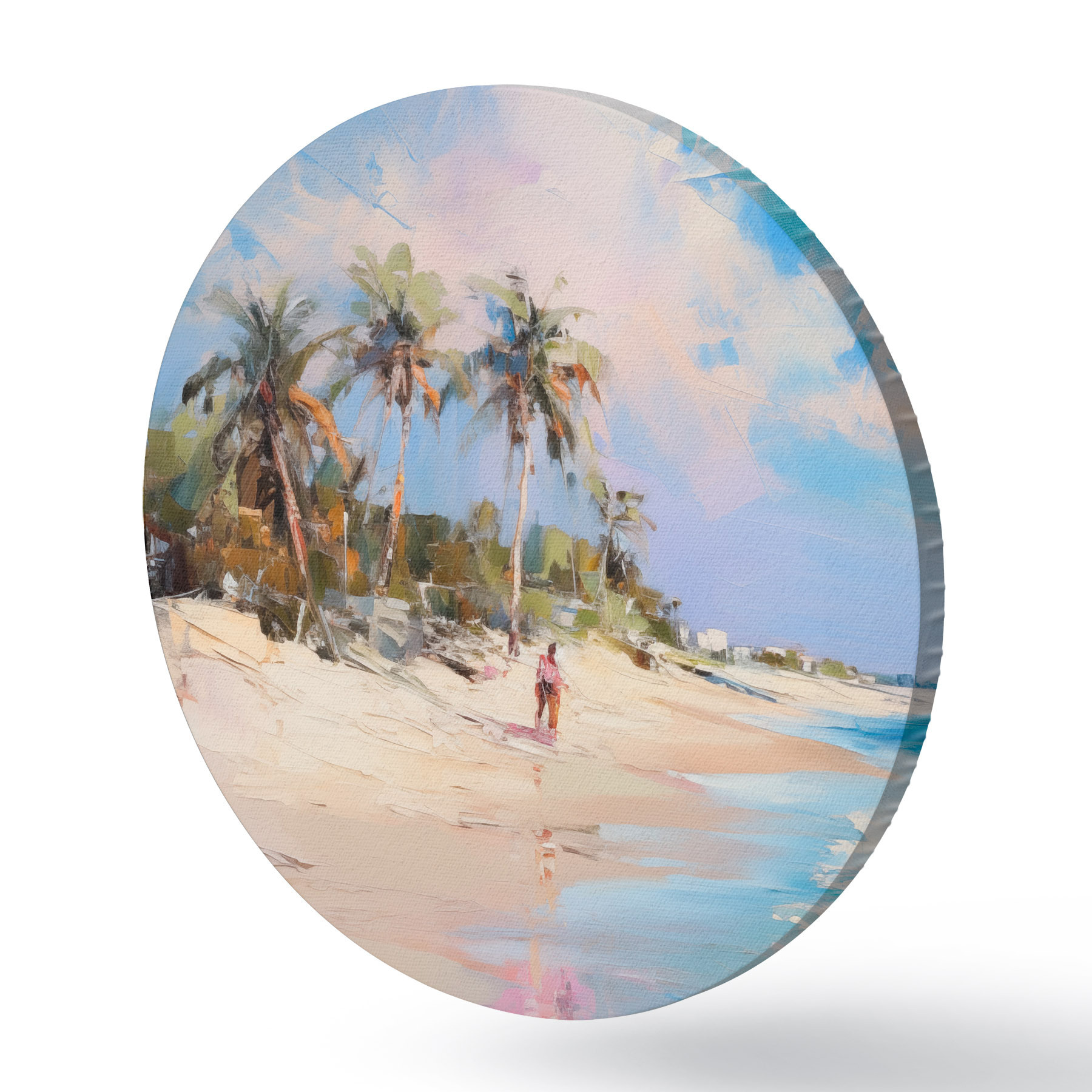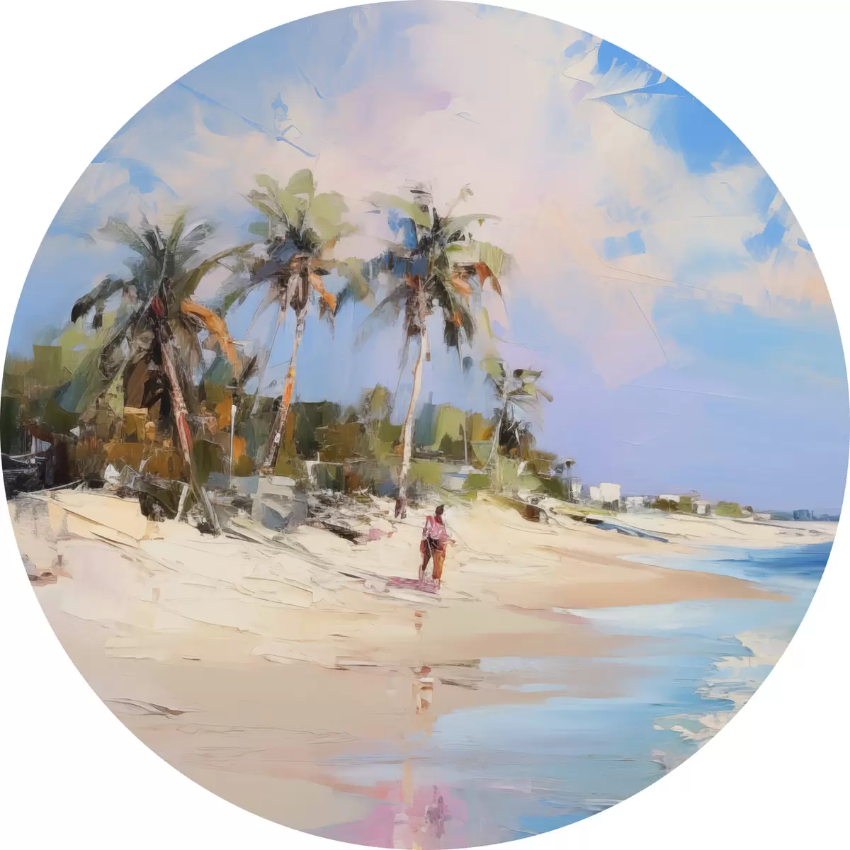 Tableaux ronds Paysage abstrait, une plage avec des palmiers, une journée ensoleillée avec un ciel bleu et quelques nuages r46284