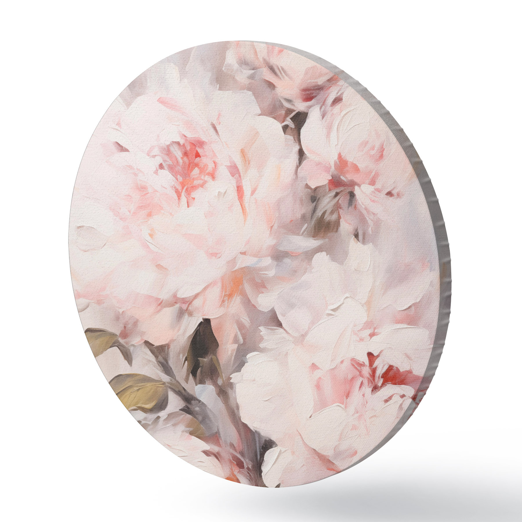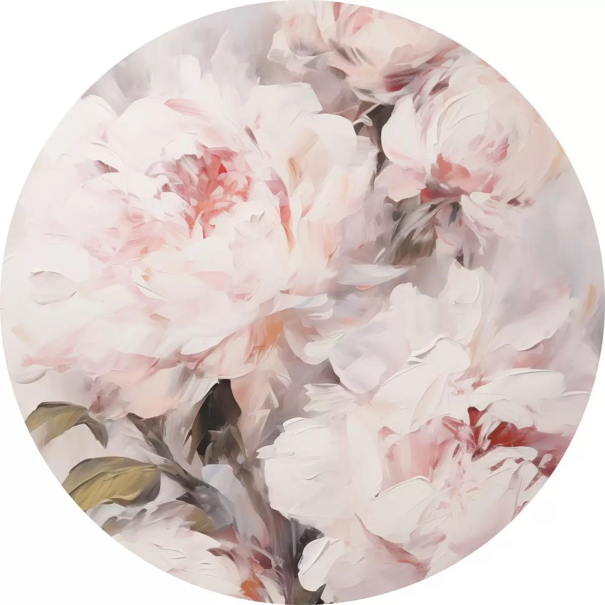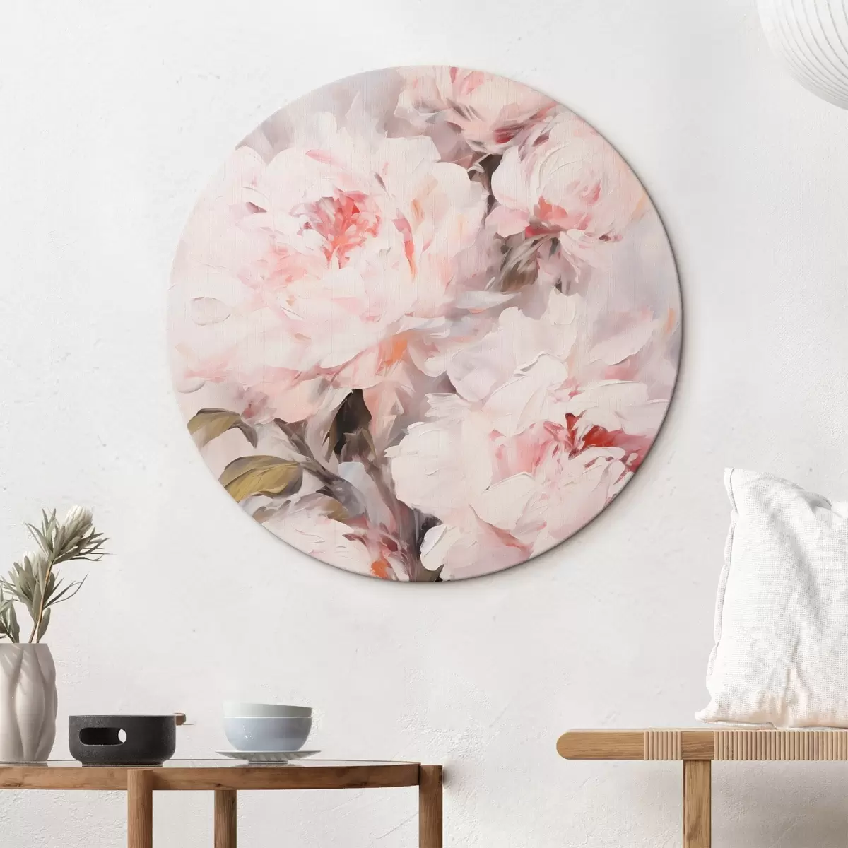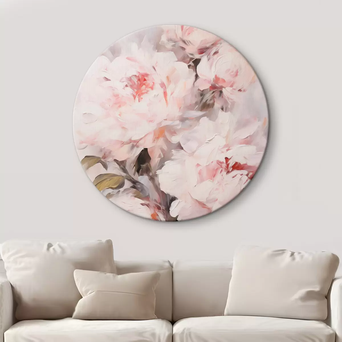 Tableaux ronds Bouquet de pivoines rose pâle avec des feuilles vertes, coups de pinceau doux, couleurs pastel, sur fond clair r46294