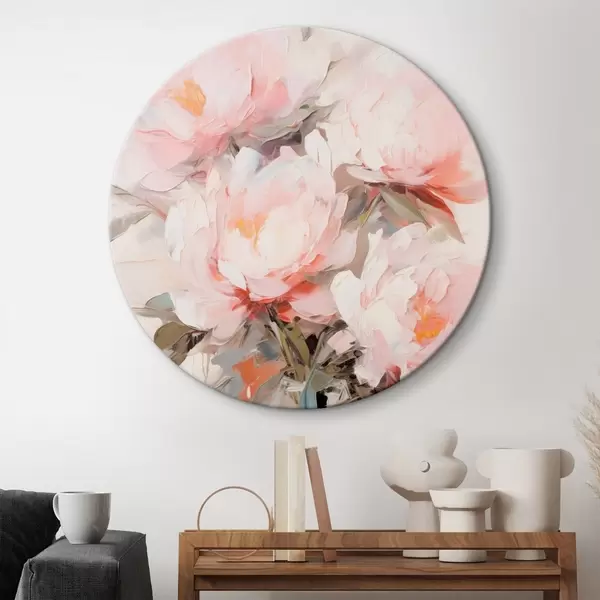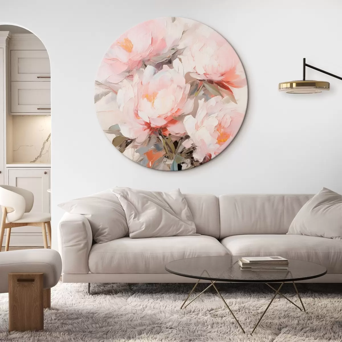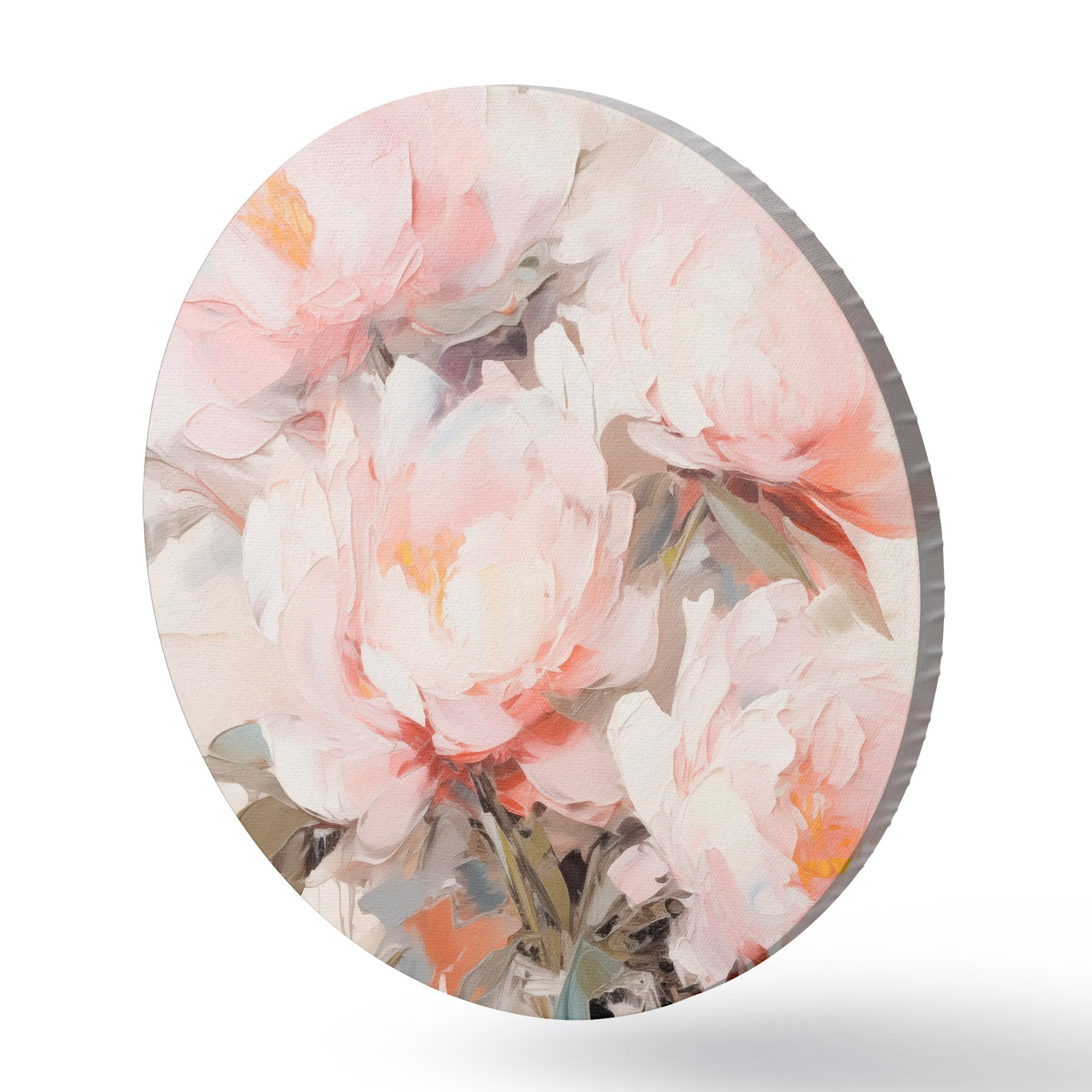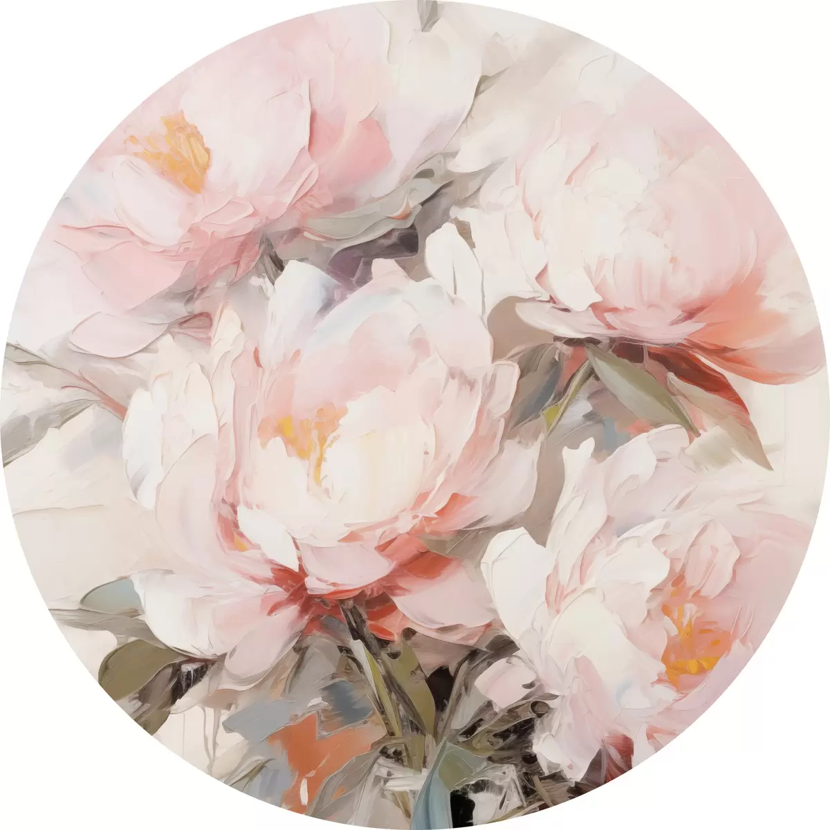 Tableaux ronds Bouquet de pivoines roses et blanches dans un vase en verre, coups de pinceau doux, couleurs pastel, fond neutre r46295