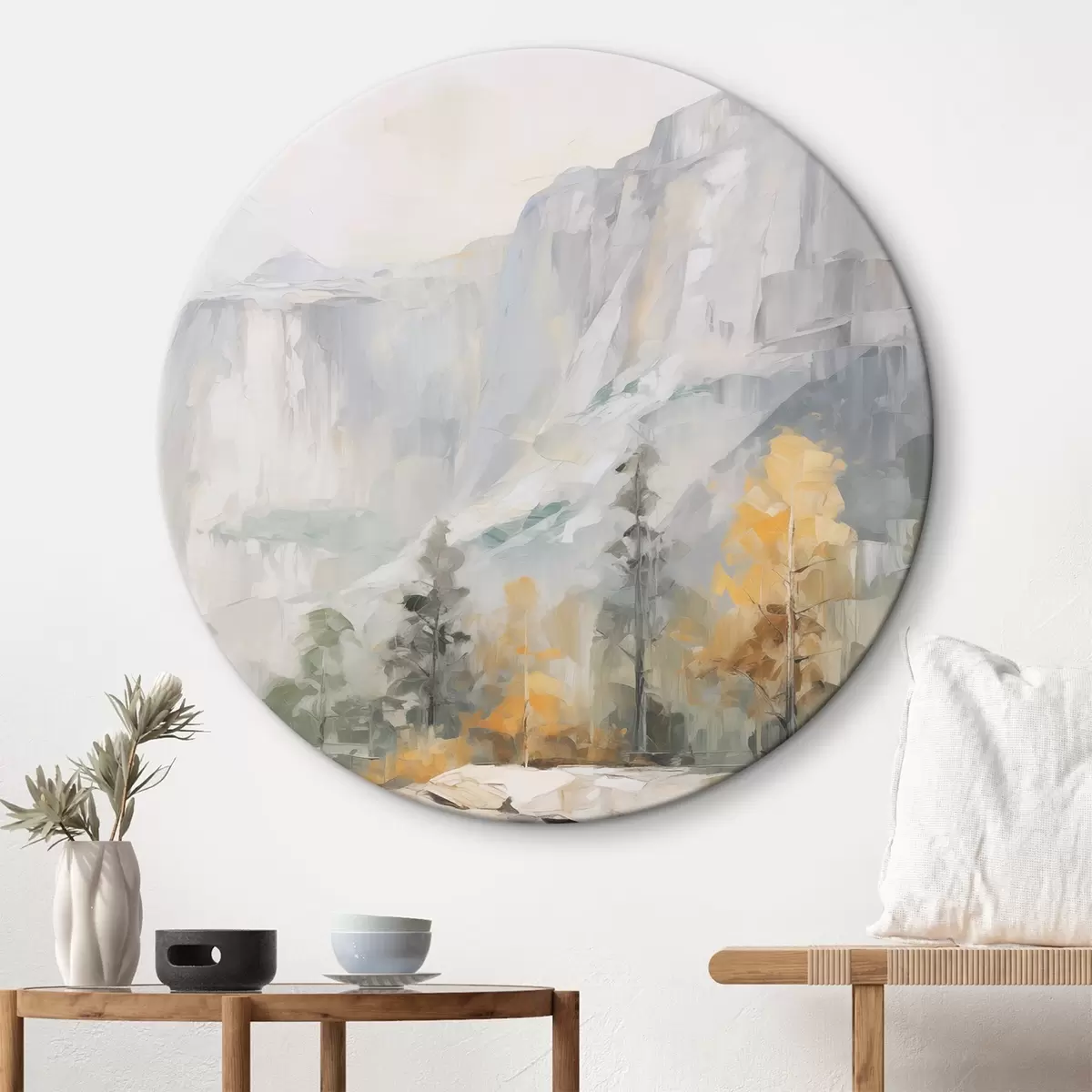 Tableaux ronds Paysage d'une forêt devant des montagnes, imitation d'une peinture r46299