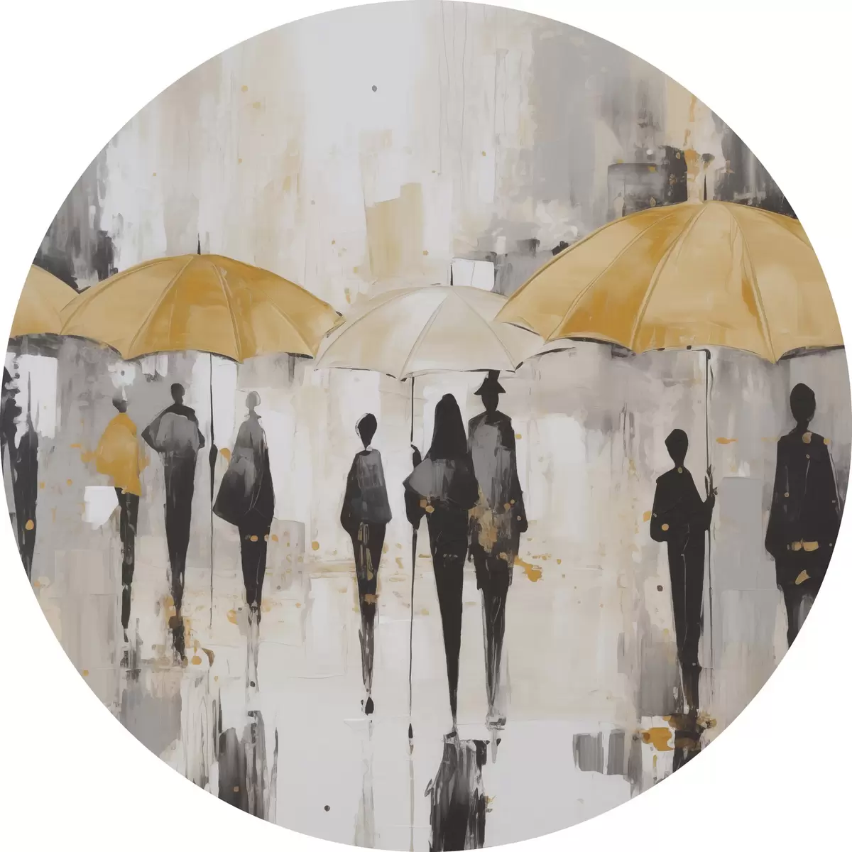 Tableaux ronds Abstraction de personnes avec des parapluies r46304
