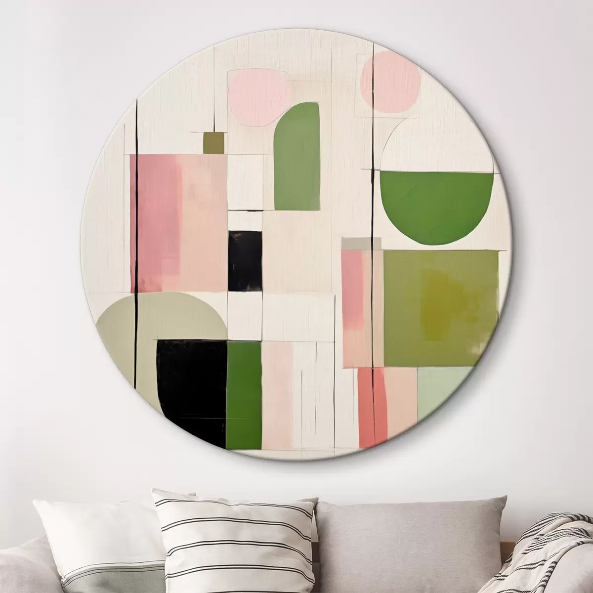 Tableaux ronds Art abstrait avec des blocs et des lignes colorés r46313