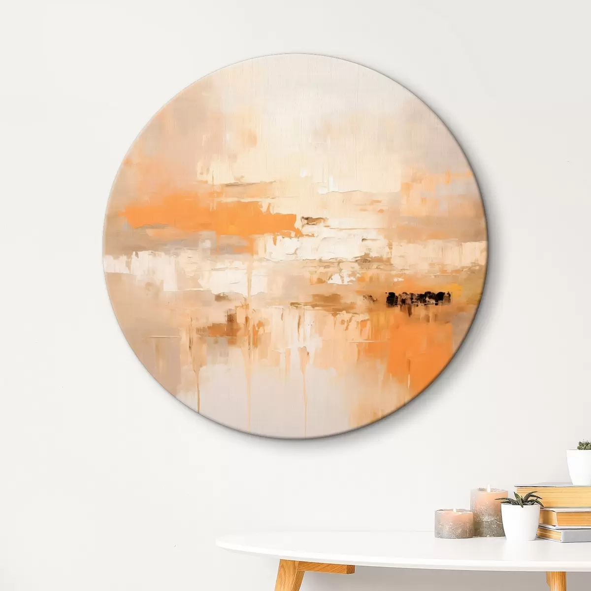 Tableaux ronds Abstraction paysagère dans un style huileux avec des tons orange et beige r46314
