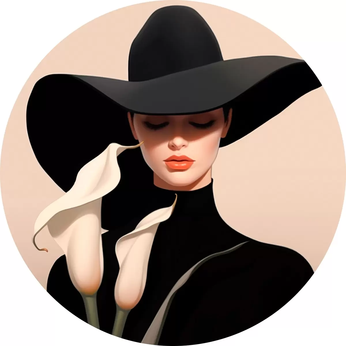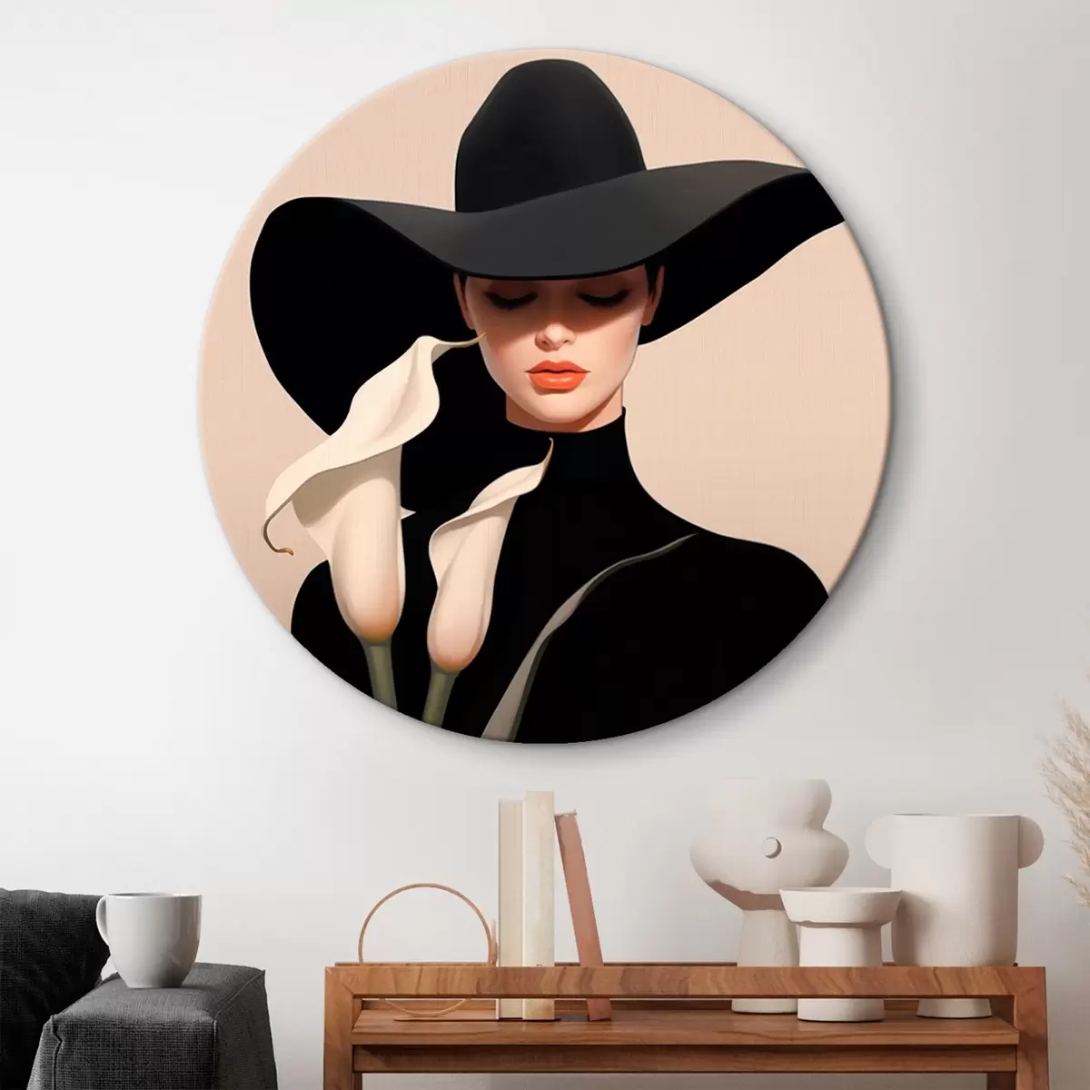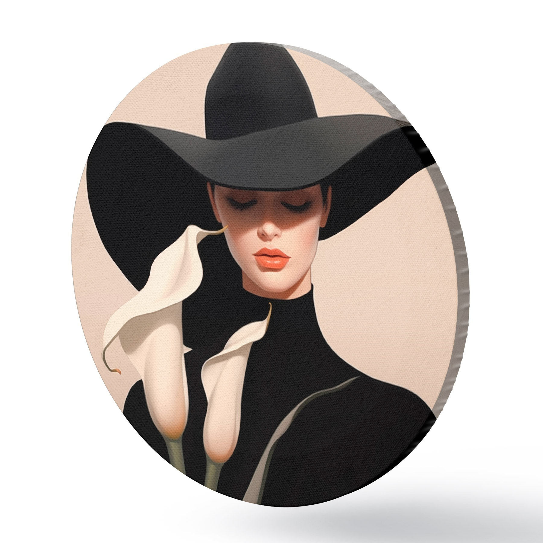 Tableaux ronds Fille au chapeau avec des calas r46420