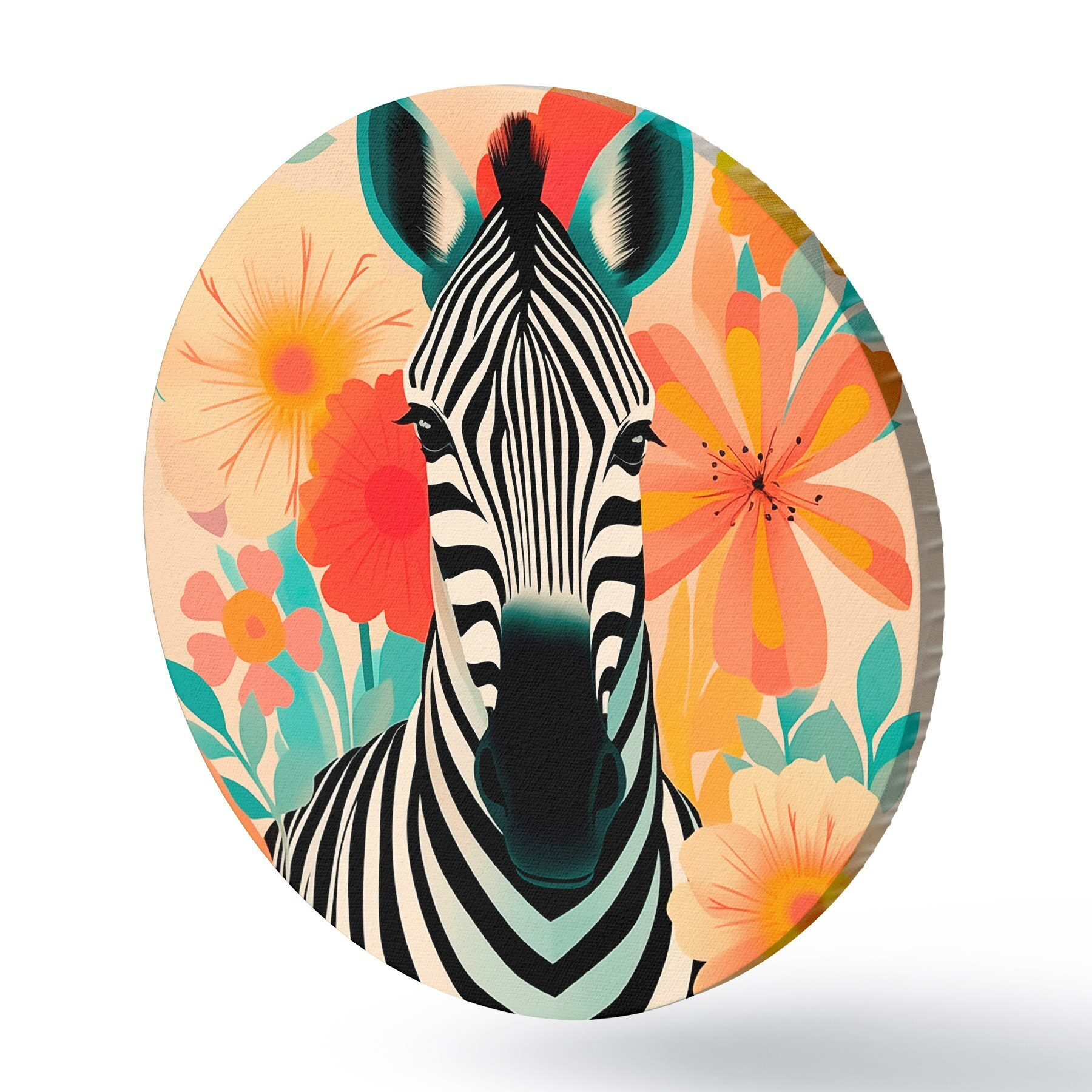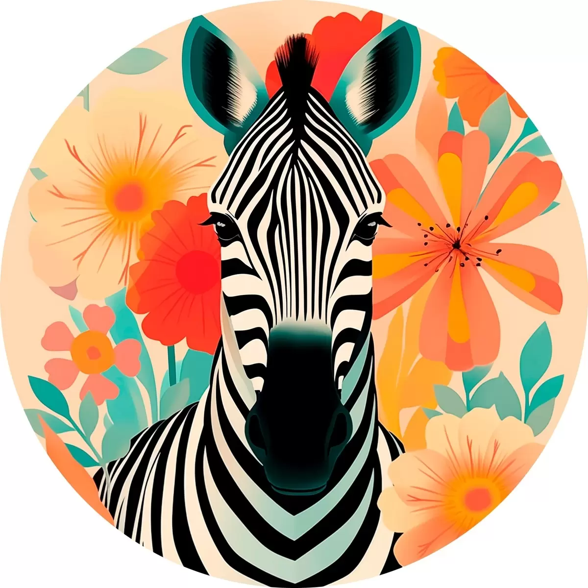 Tableaux ronds Zèbre parmi les fleurs r46457