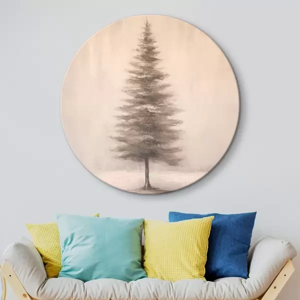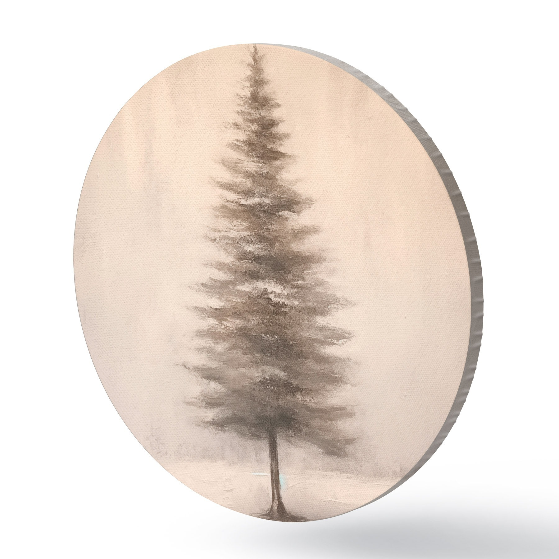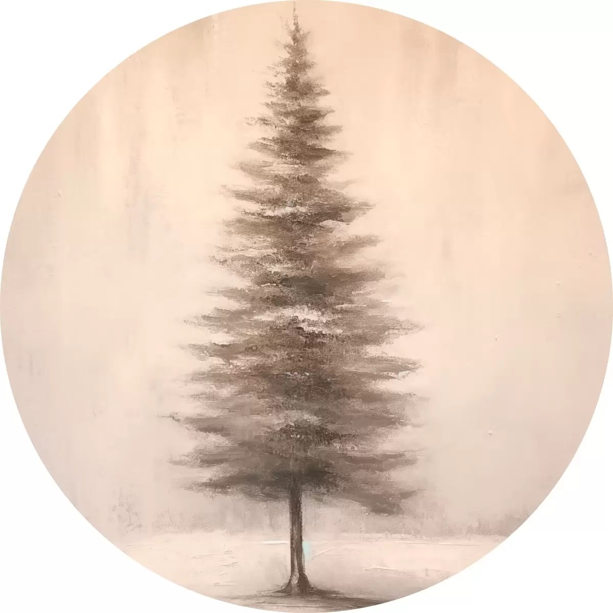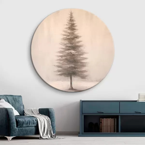 Tableaux ronds Sapin monochrome. Paysage hivernal minimaliste. r46465