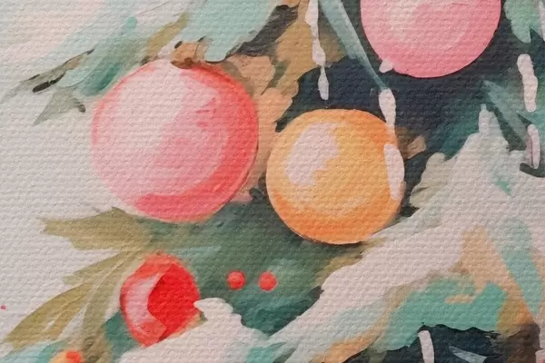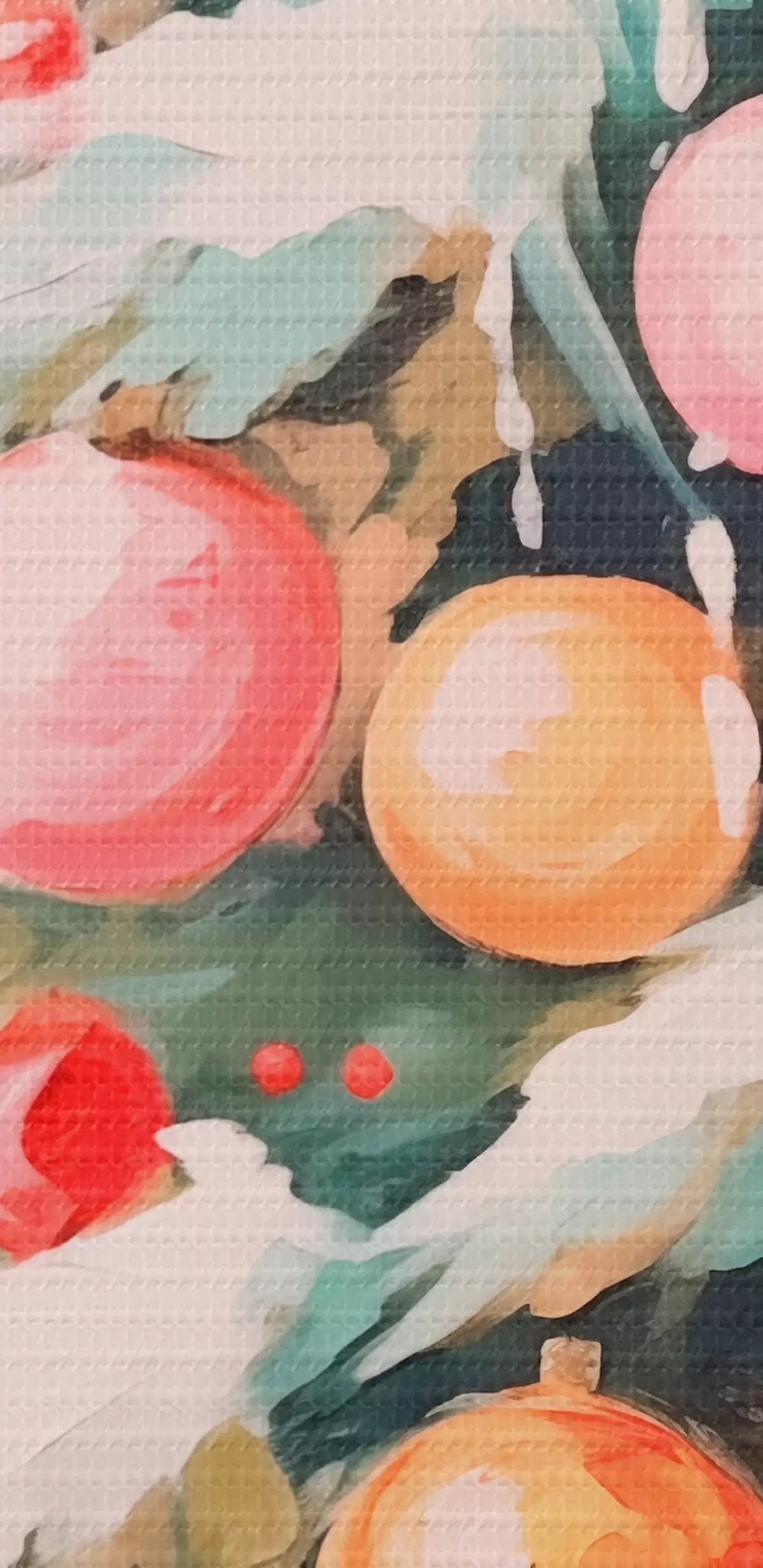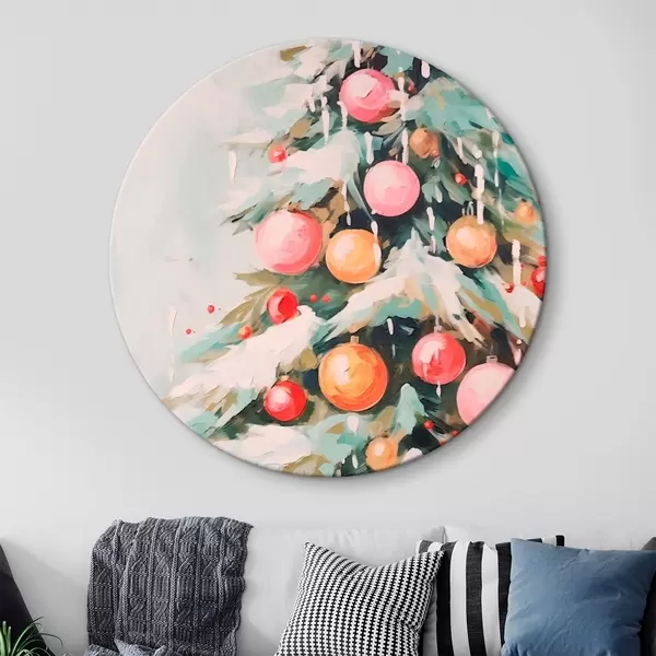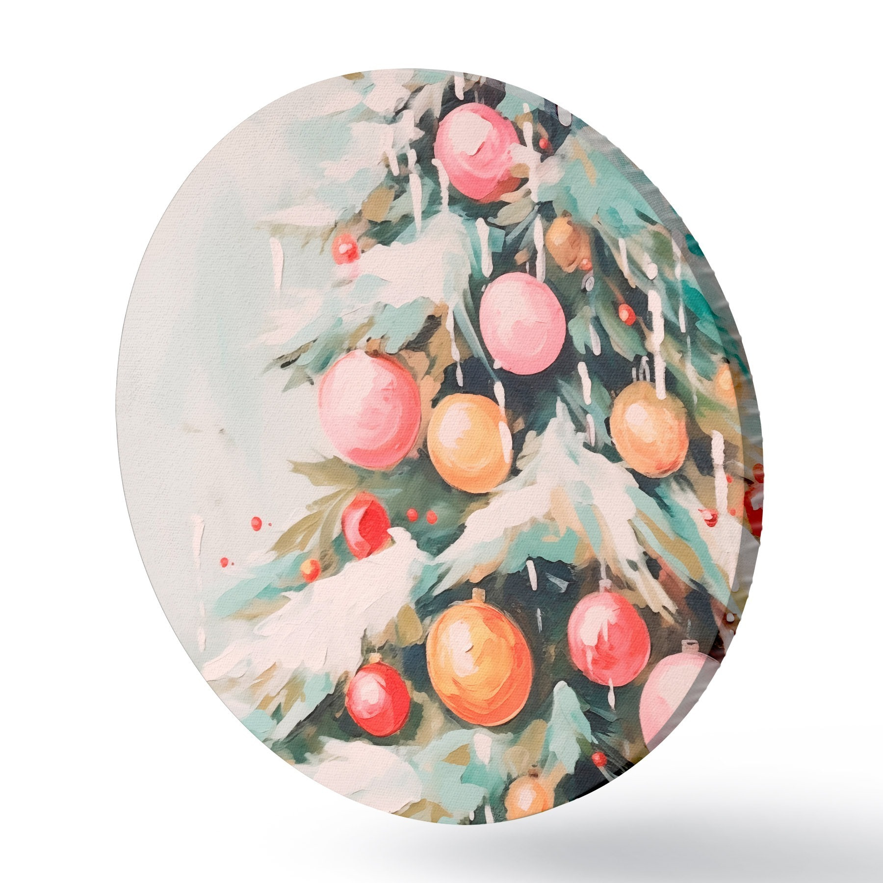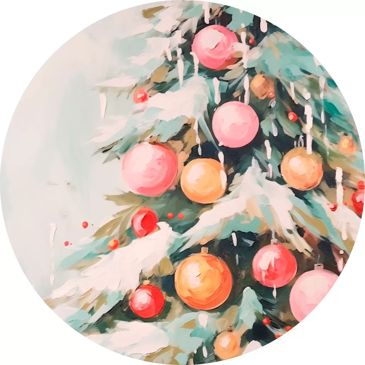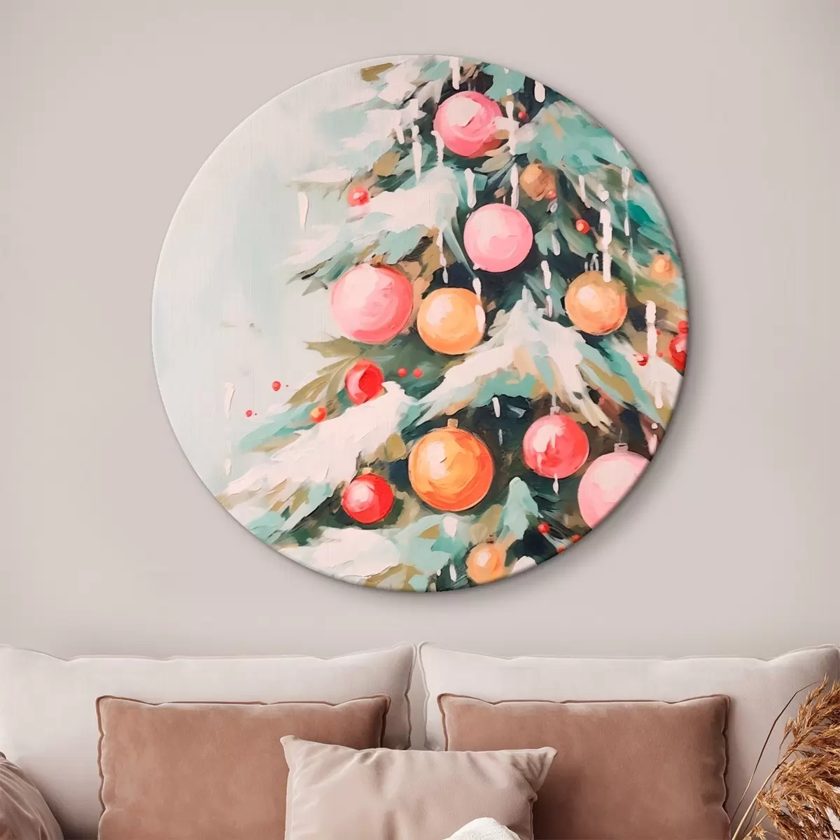 Tableaux ronds Sapin de Noël avec neige et boules roses r46480