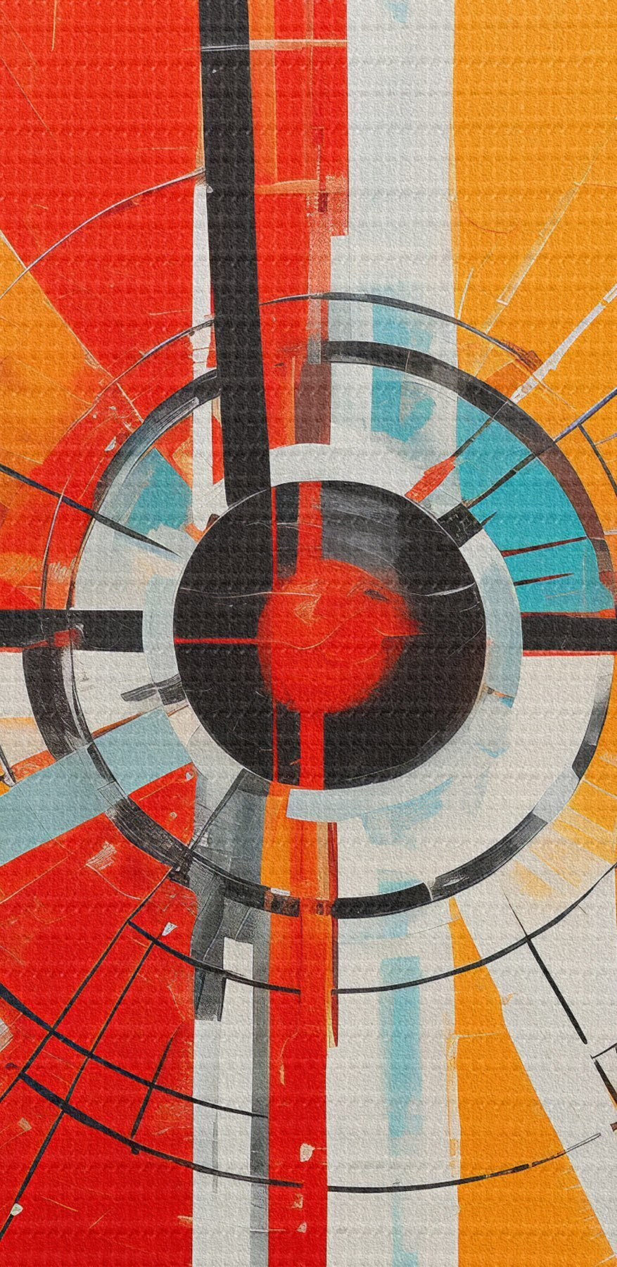 Tableaux ronds Cible concentrique avec segments bleu sarcelle et orange r46486