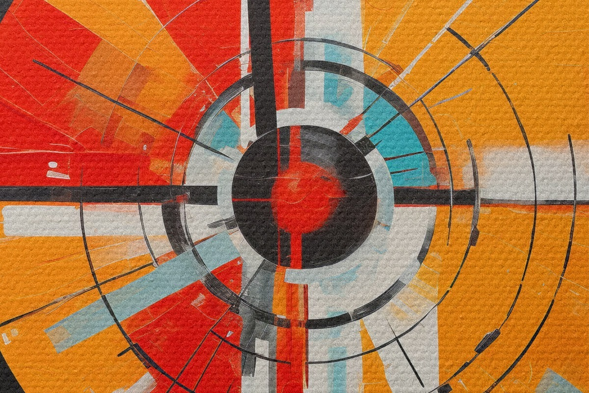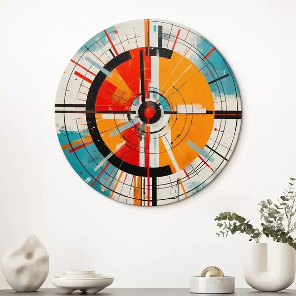Tableaux ronds Cible concentrique avec segments bleu sarcelle et orange r46486