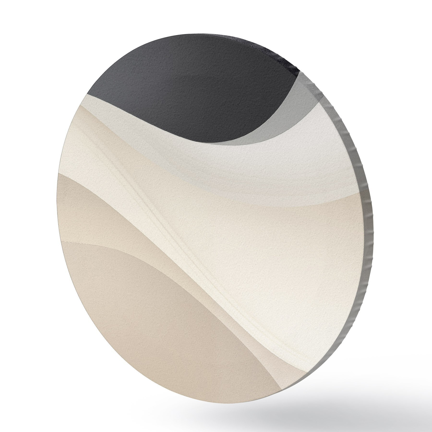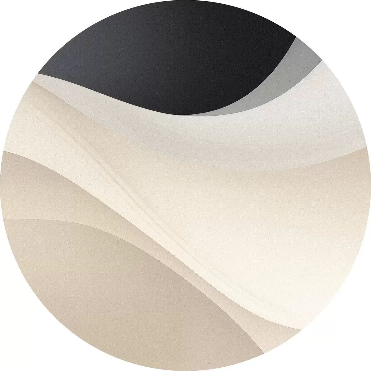 Tableaux ronds Courbes fluides superposées en noir, crème et taupe r46492