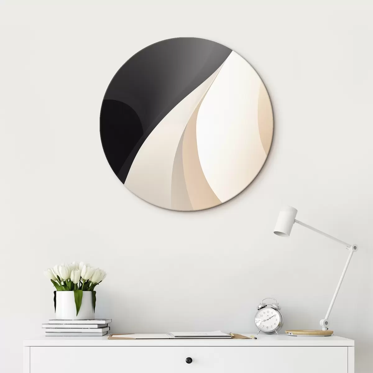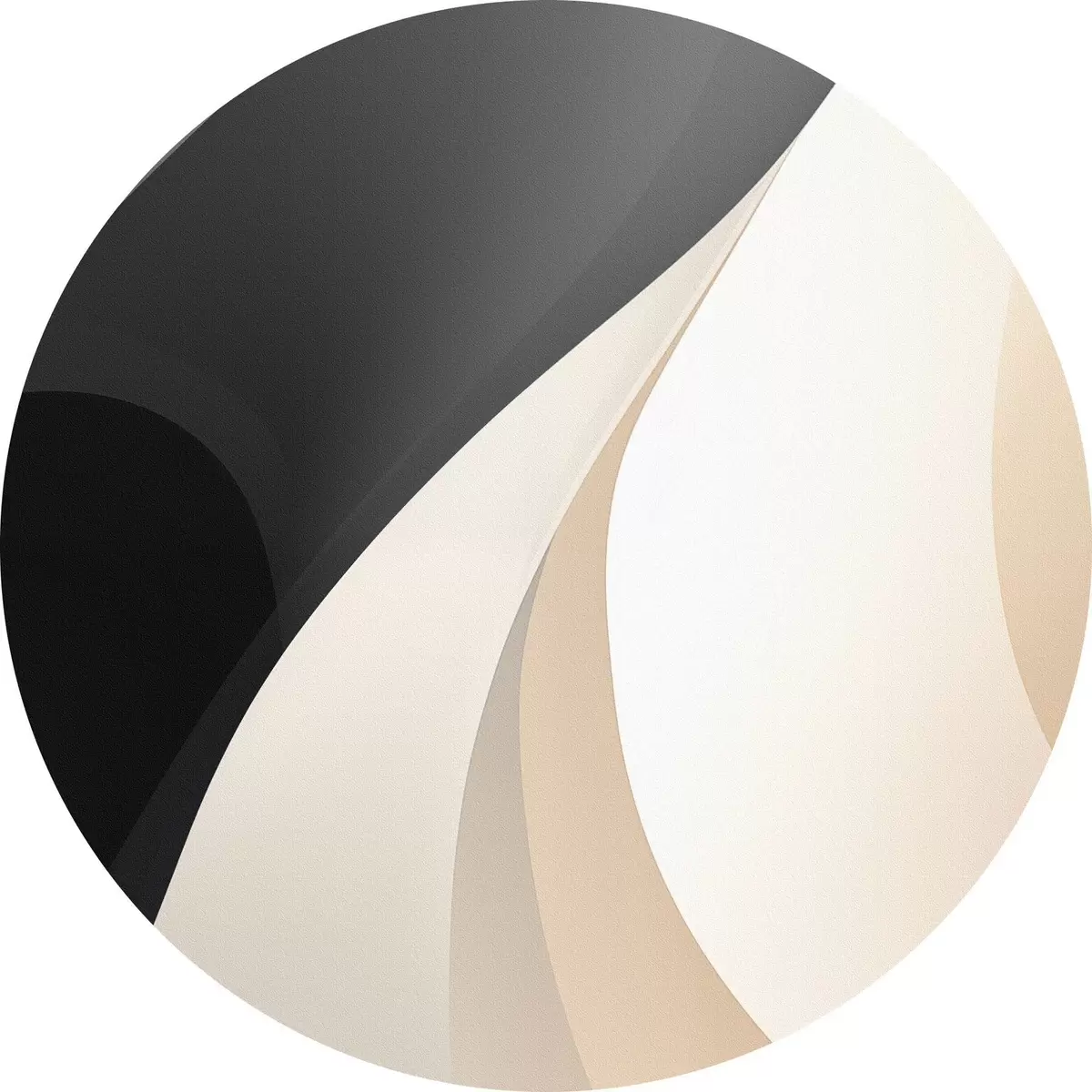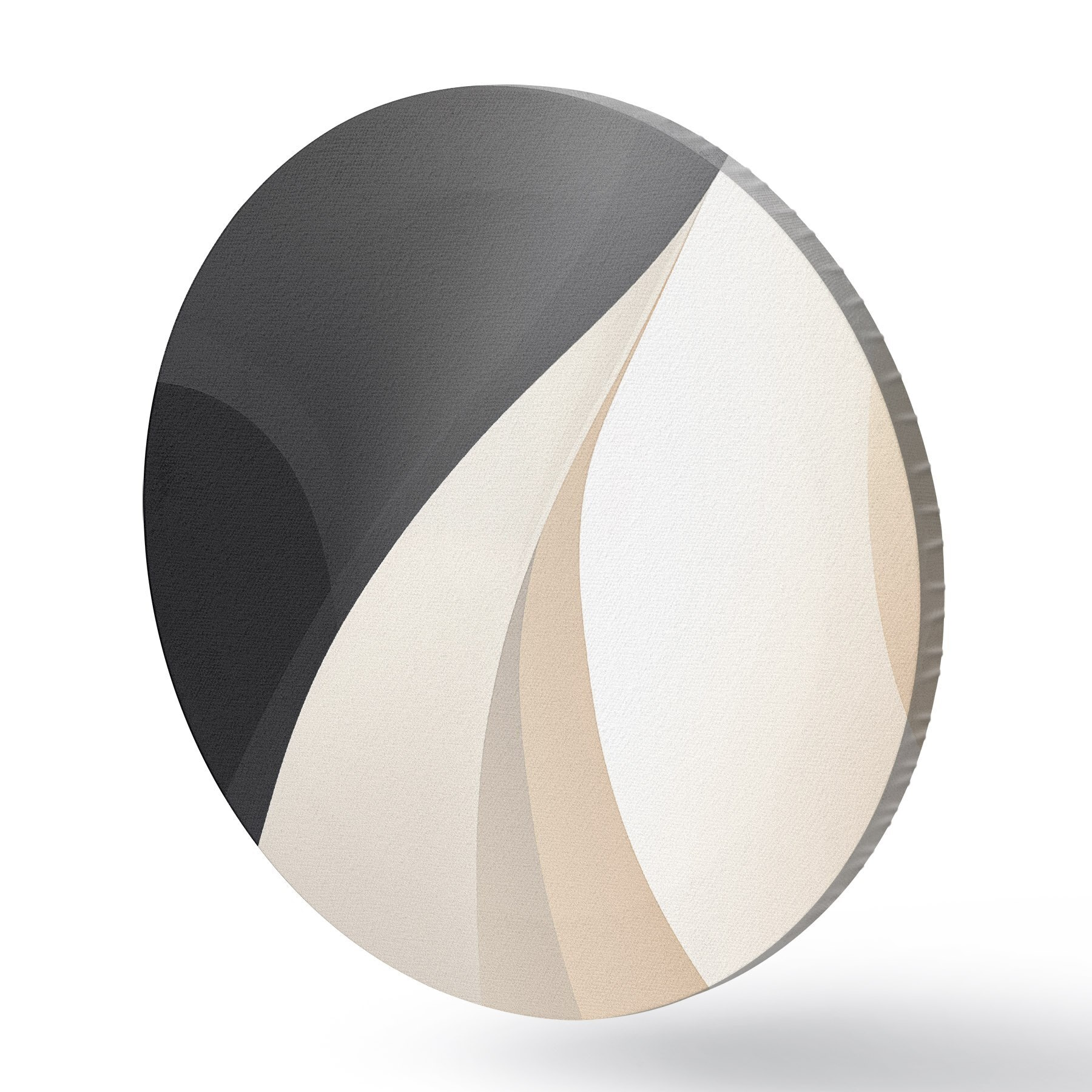 Tableaux ronds Courbes élégantes et superposées dans les tons charbon, ivoire et sable r46493