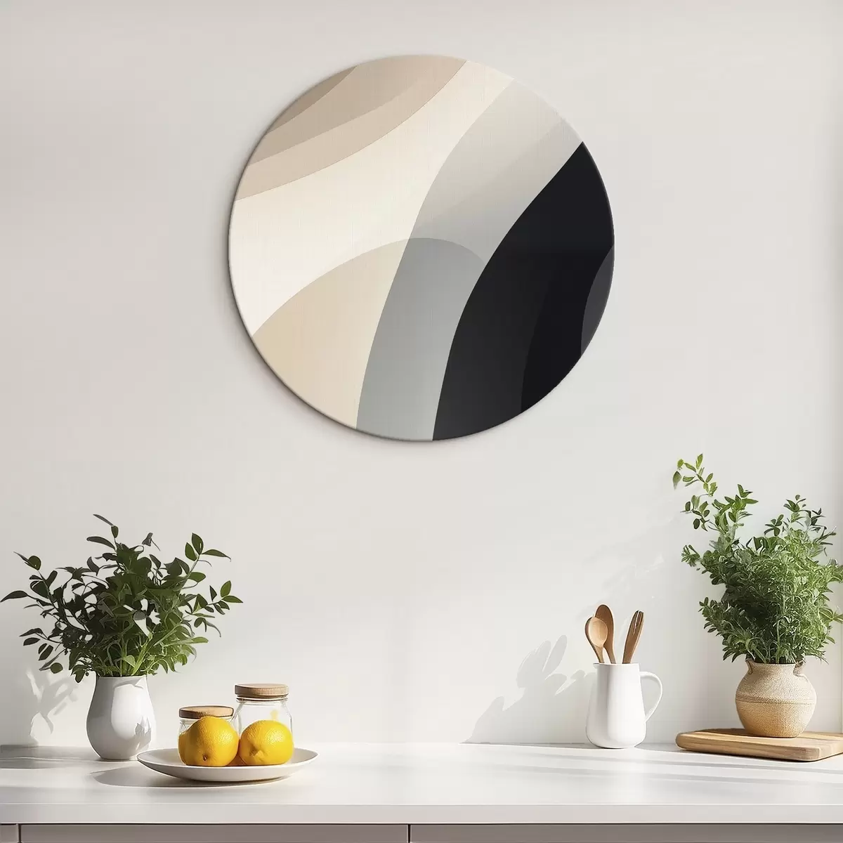 Tableaux ronds Formes organiques ondulées dans des tons beige chaud et anthracite r46494