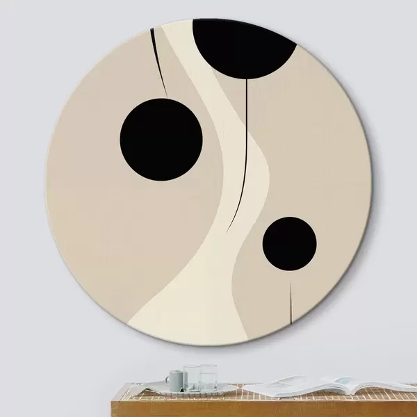 Tableaux ronds Cercles minimalistes sur fond beige rehaussés de lignes fluides r46496