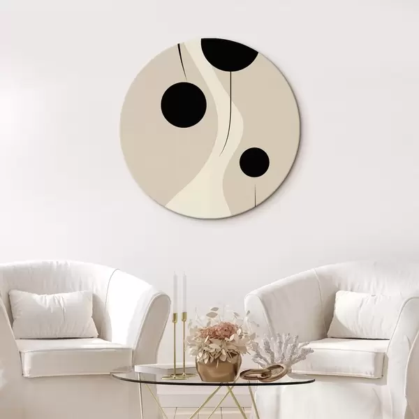 Tableaux ronds Cercles minimalistes sur fond beige rehaussés de lignes fluides r46496