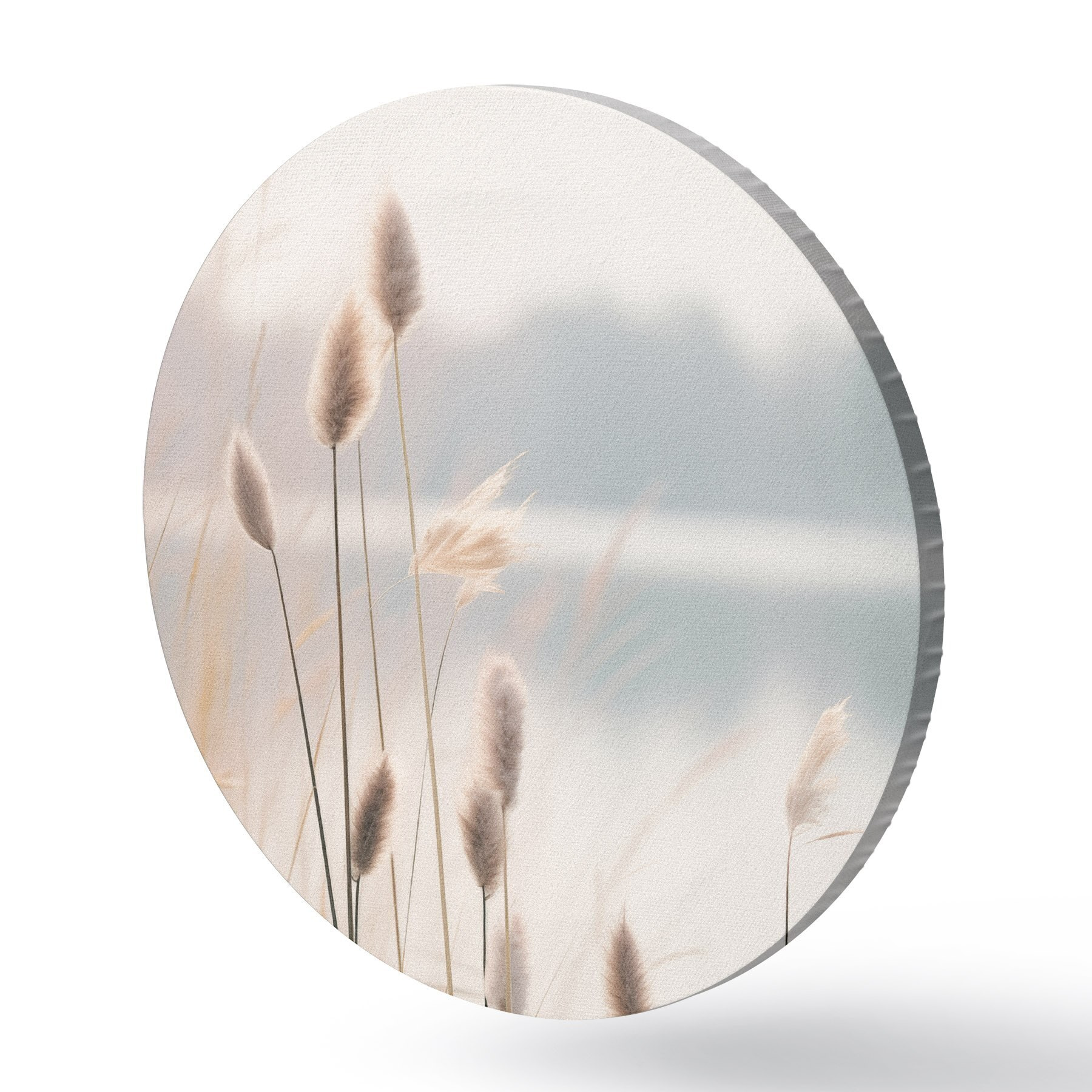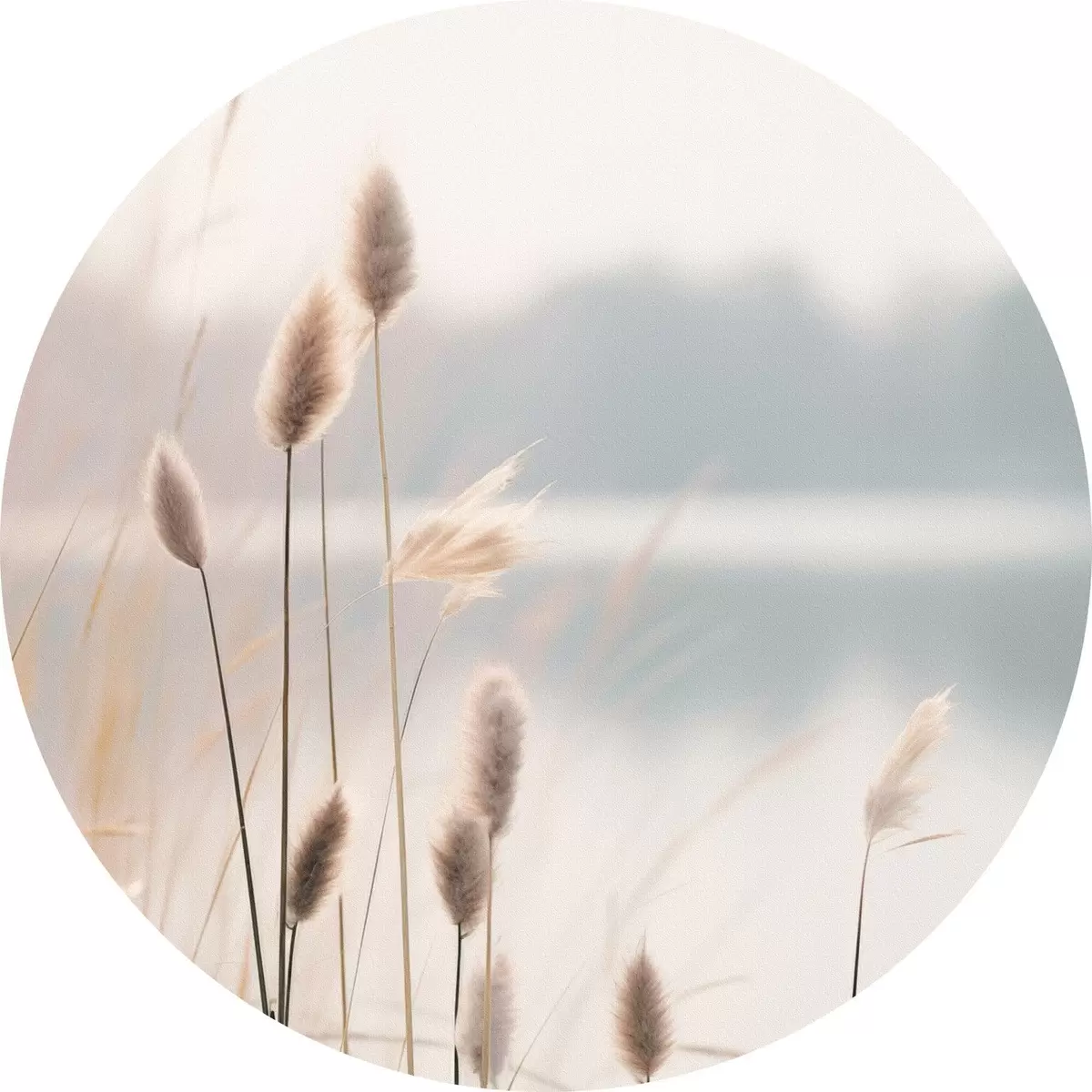 Tableaux ronds Roseaux souples au bord d'un lac brumeux, tons beiges pastel r46504