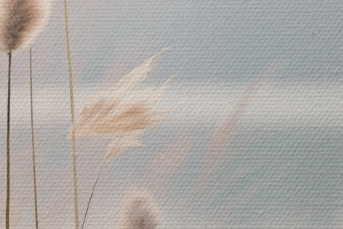 Image Roseaux souples au bord d'un lac brumeux, tons beiges pastel Nr r46504